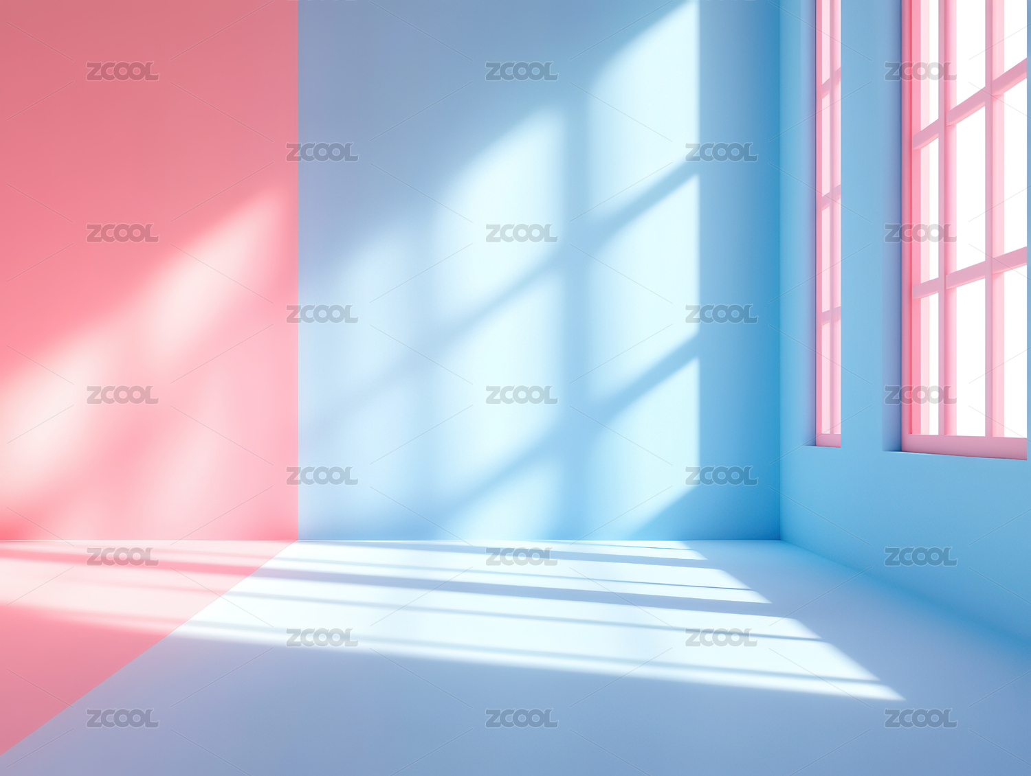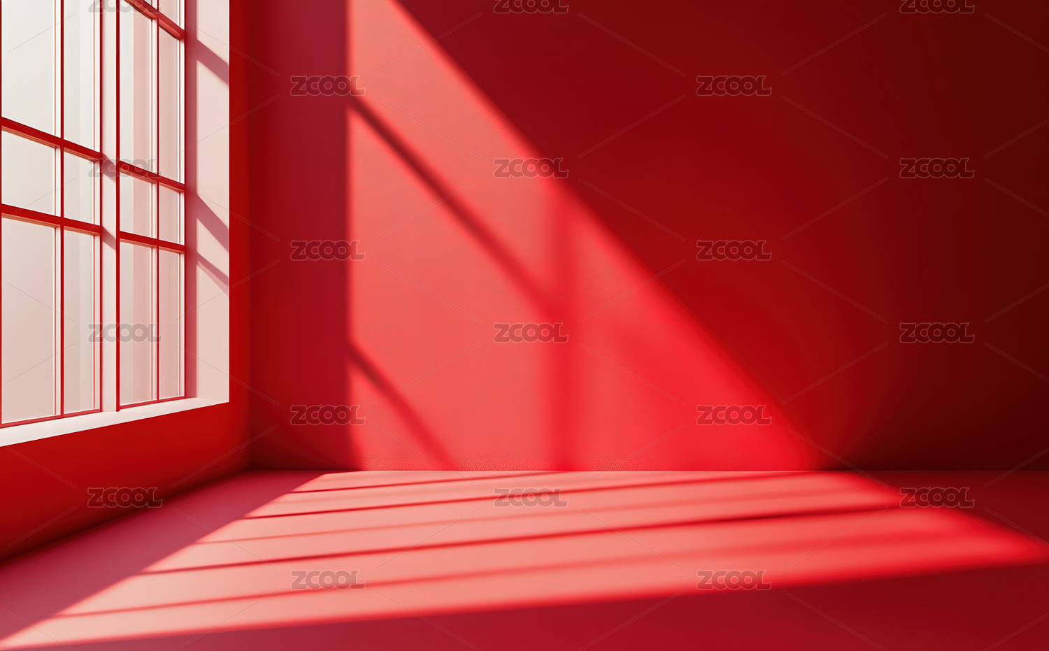 红色房间阳光透过窗户洒在地面