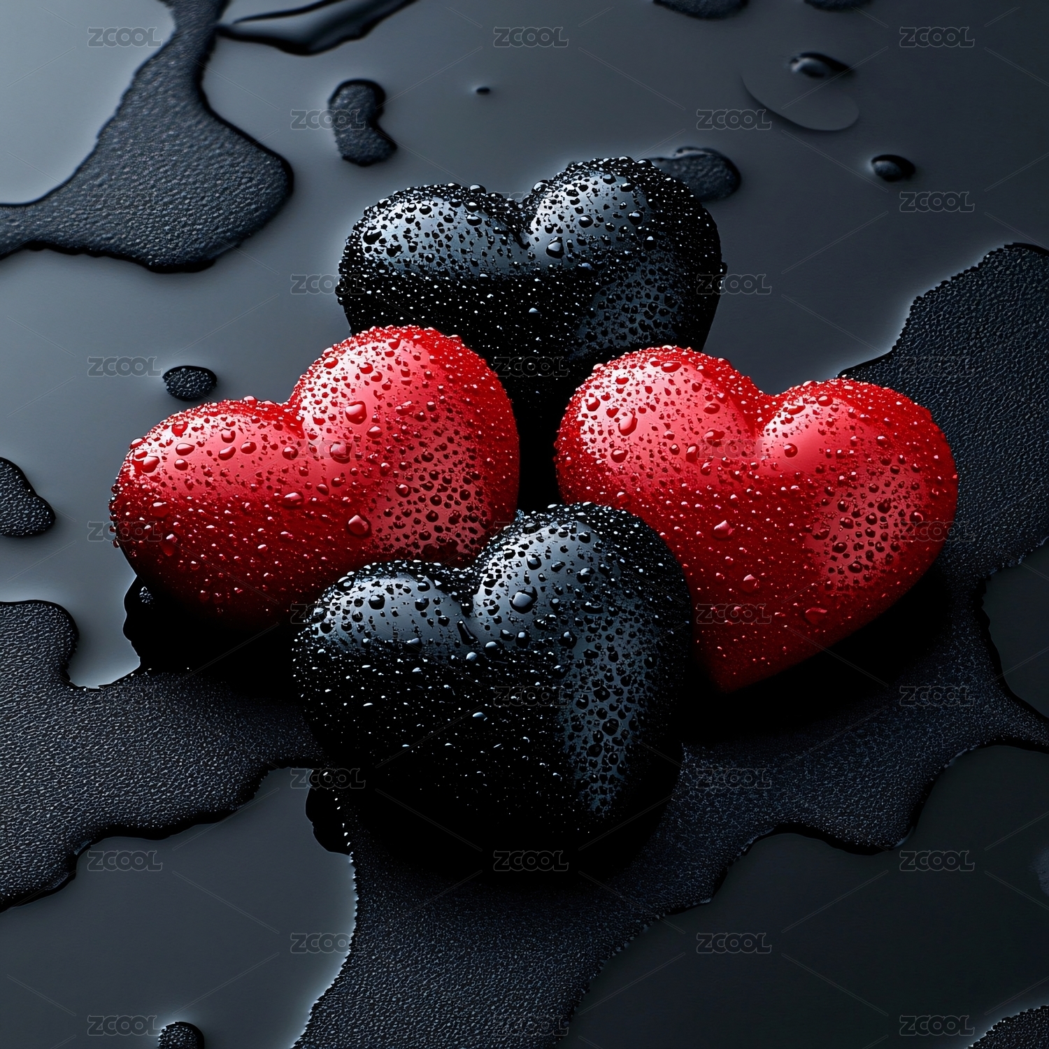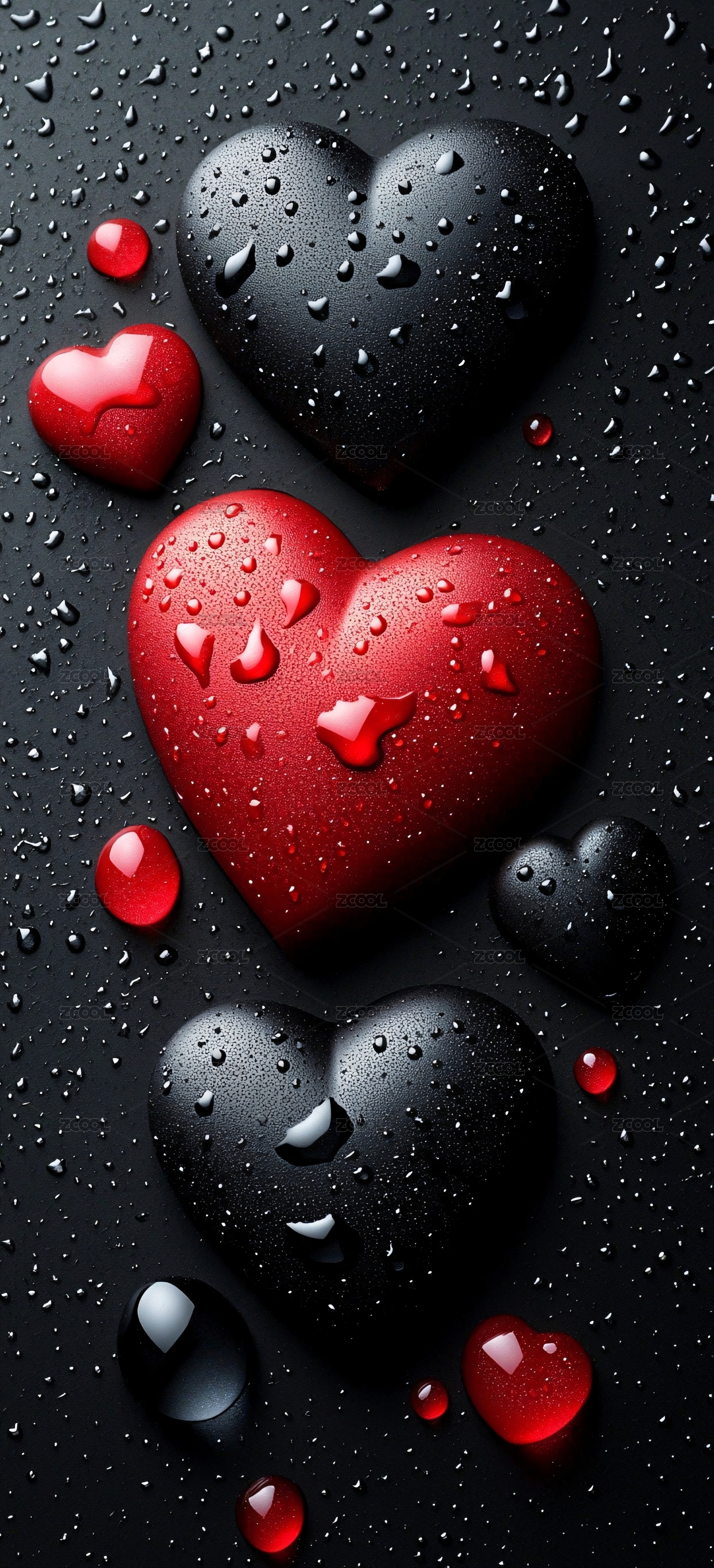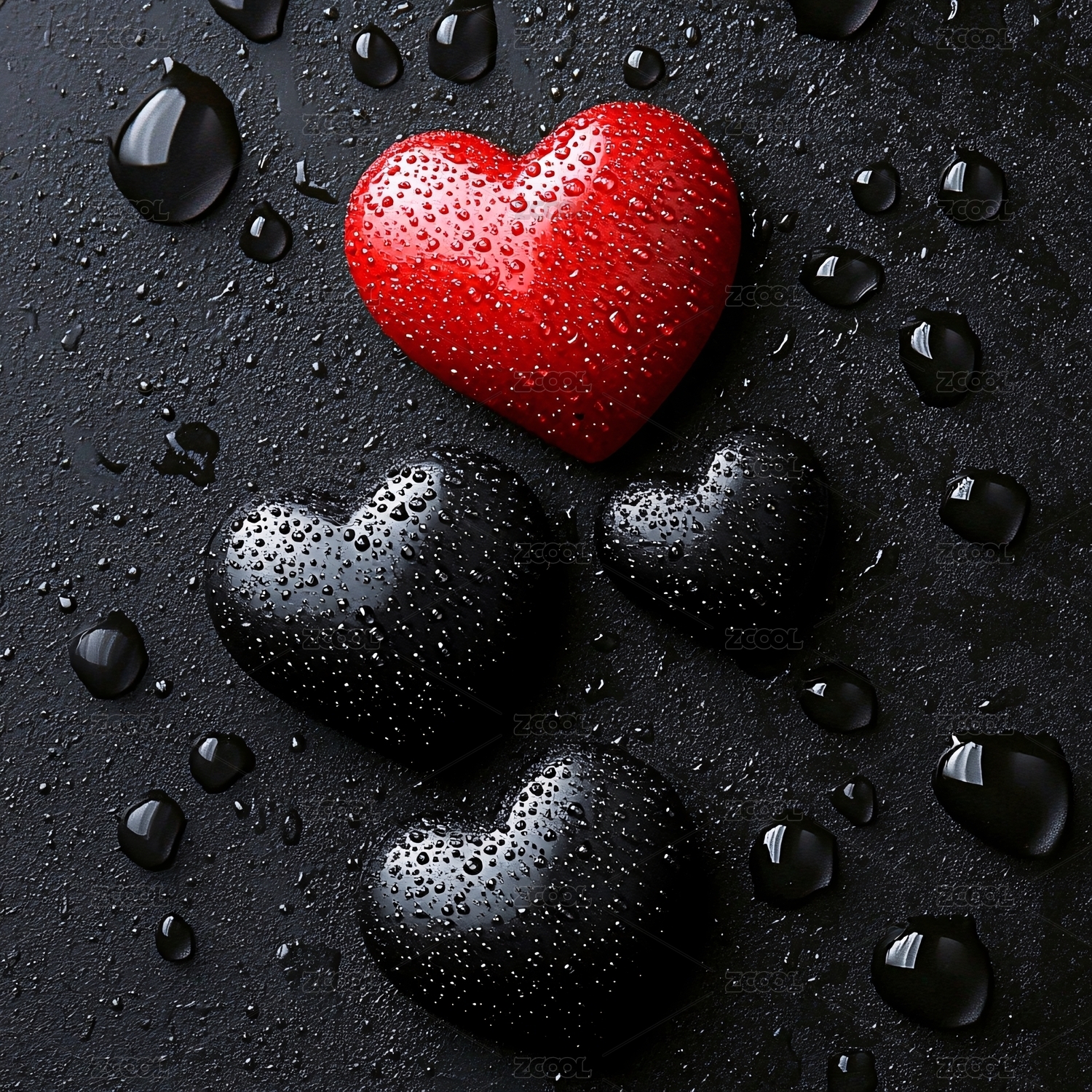 水珠点缀的多彩爱心
