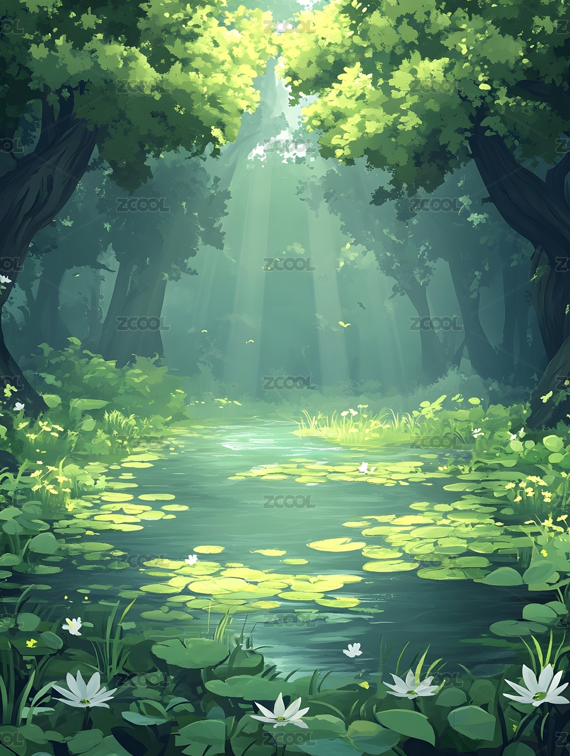 倒影,景色,绿色,光影,宁静,阳光,季节,微风,自然,生机