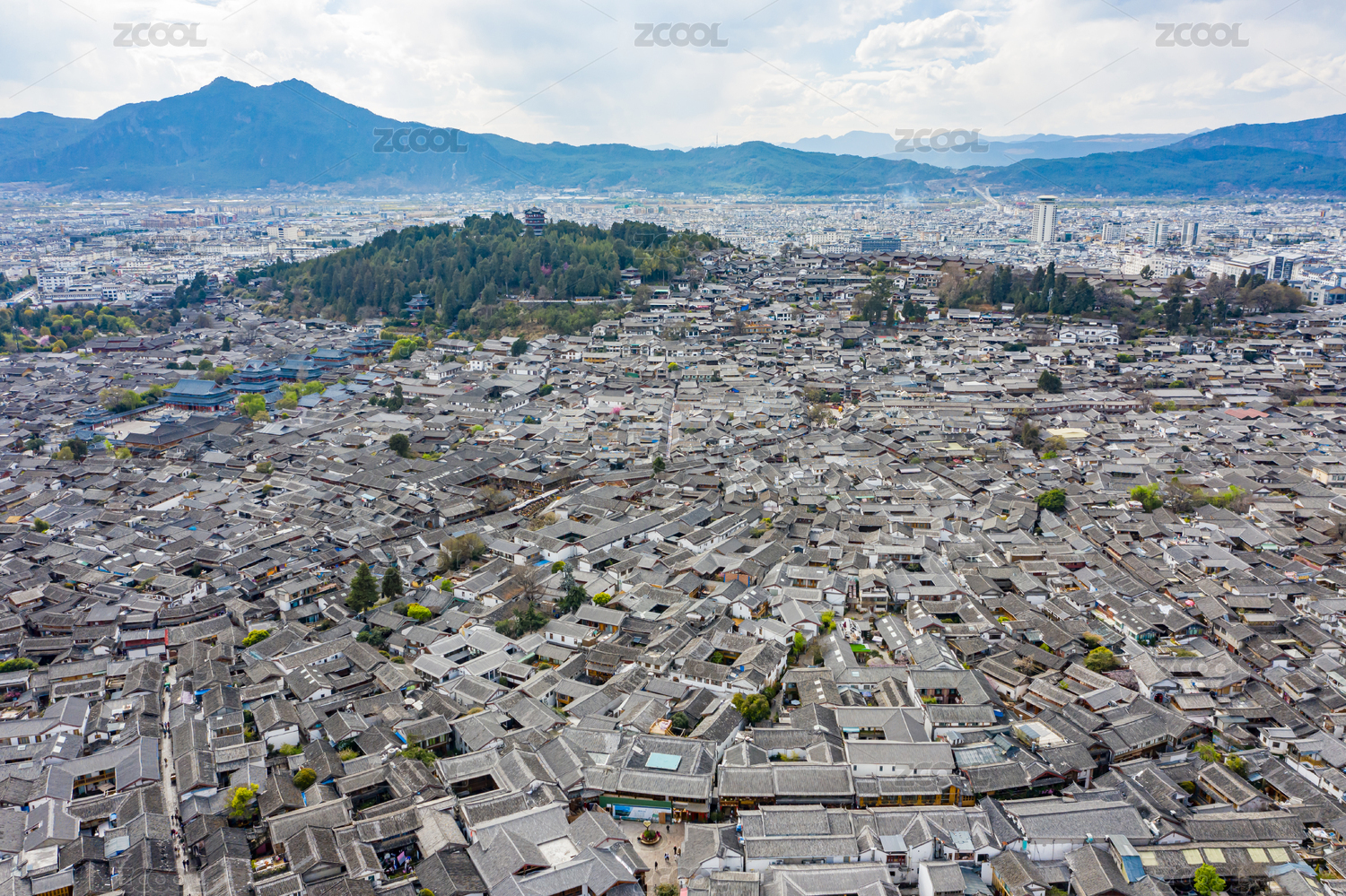 航拍丽江古城丽江大研古城世界文化遗产古镇