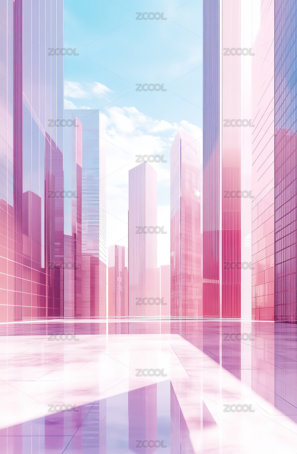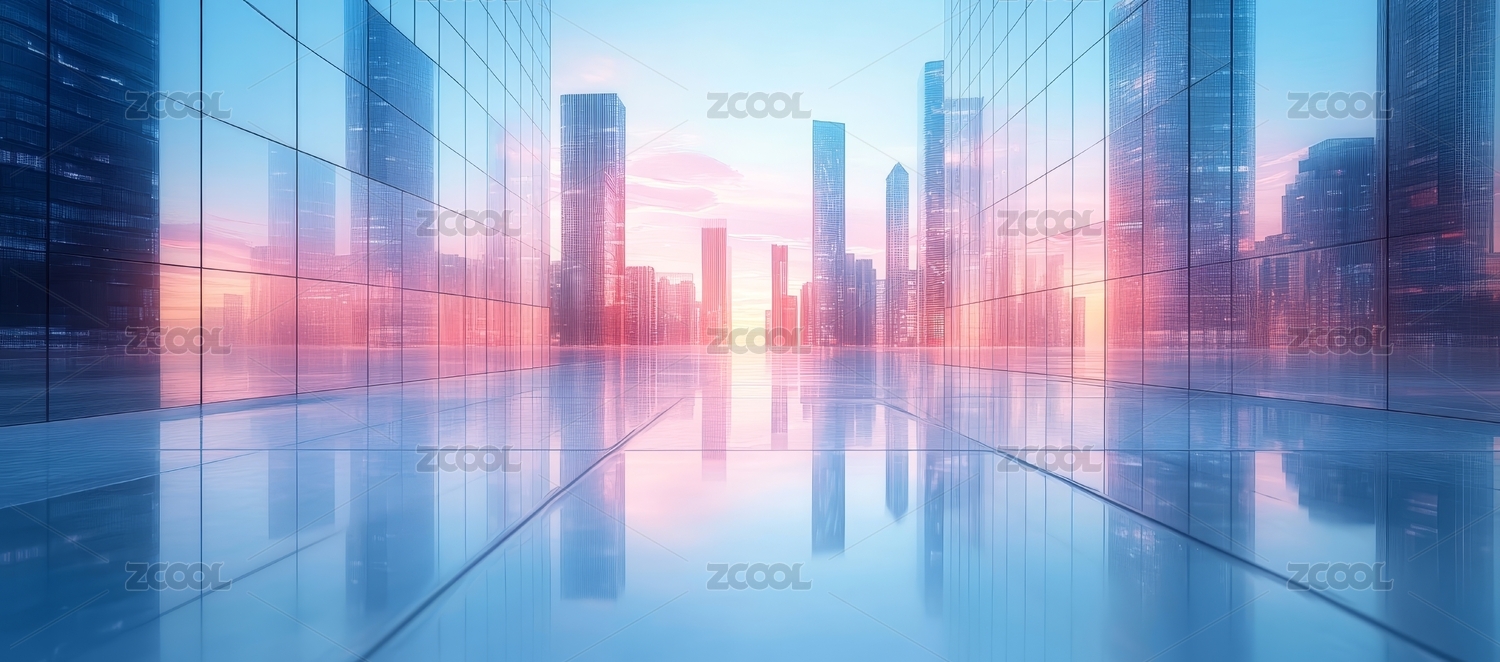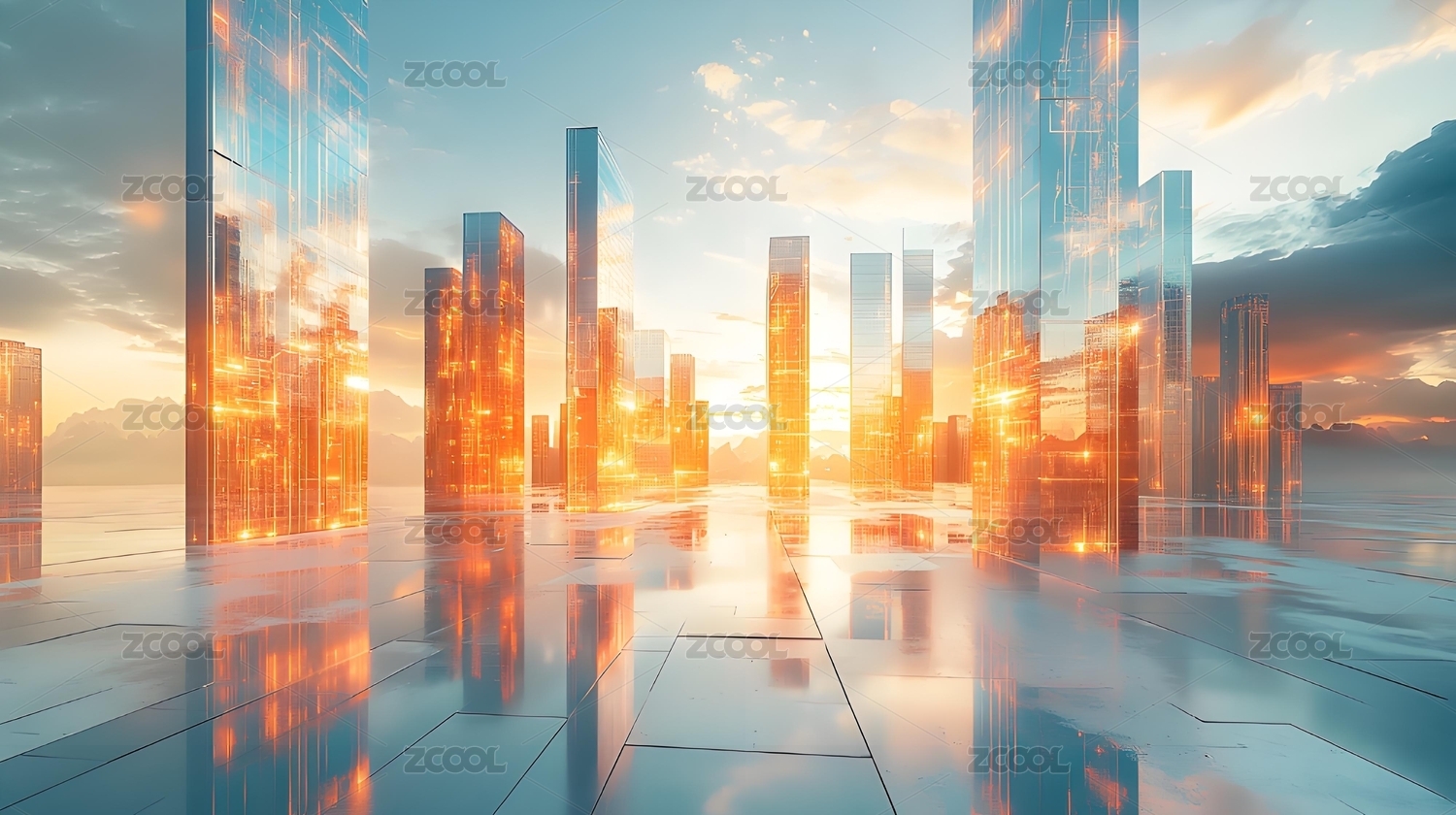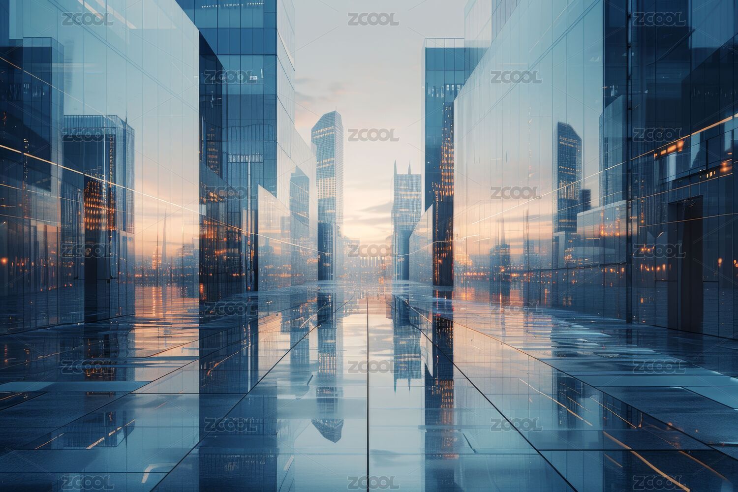 未来, 科技, 设计, 建筑, 场景,玻璃, 城市, 高楼, 街道, 反射