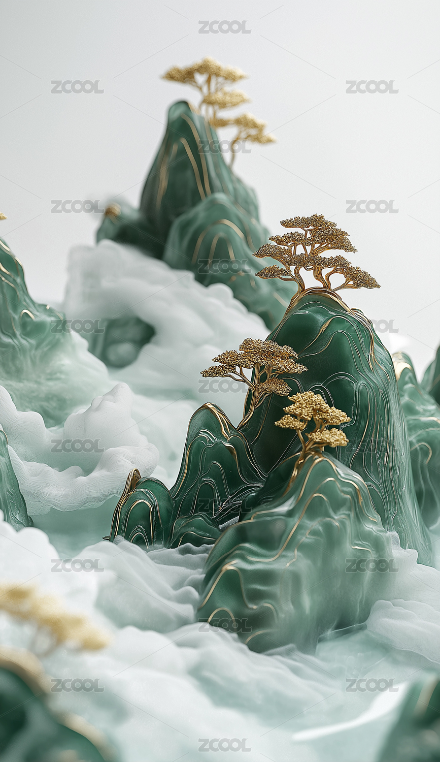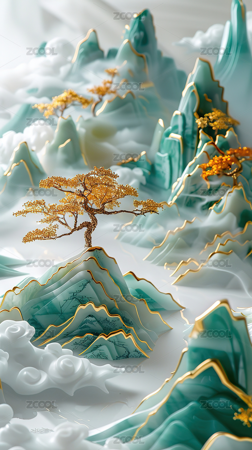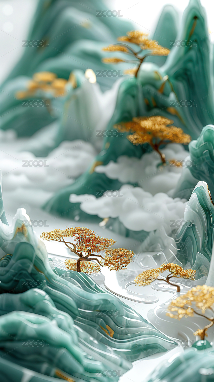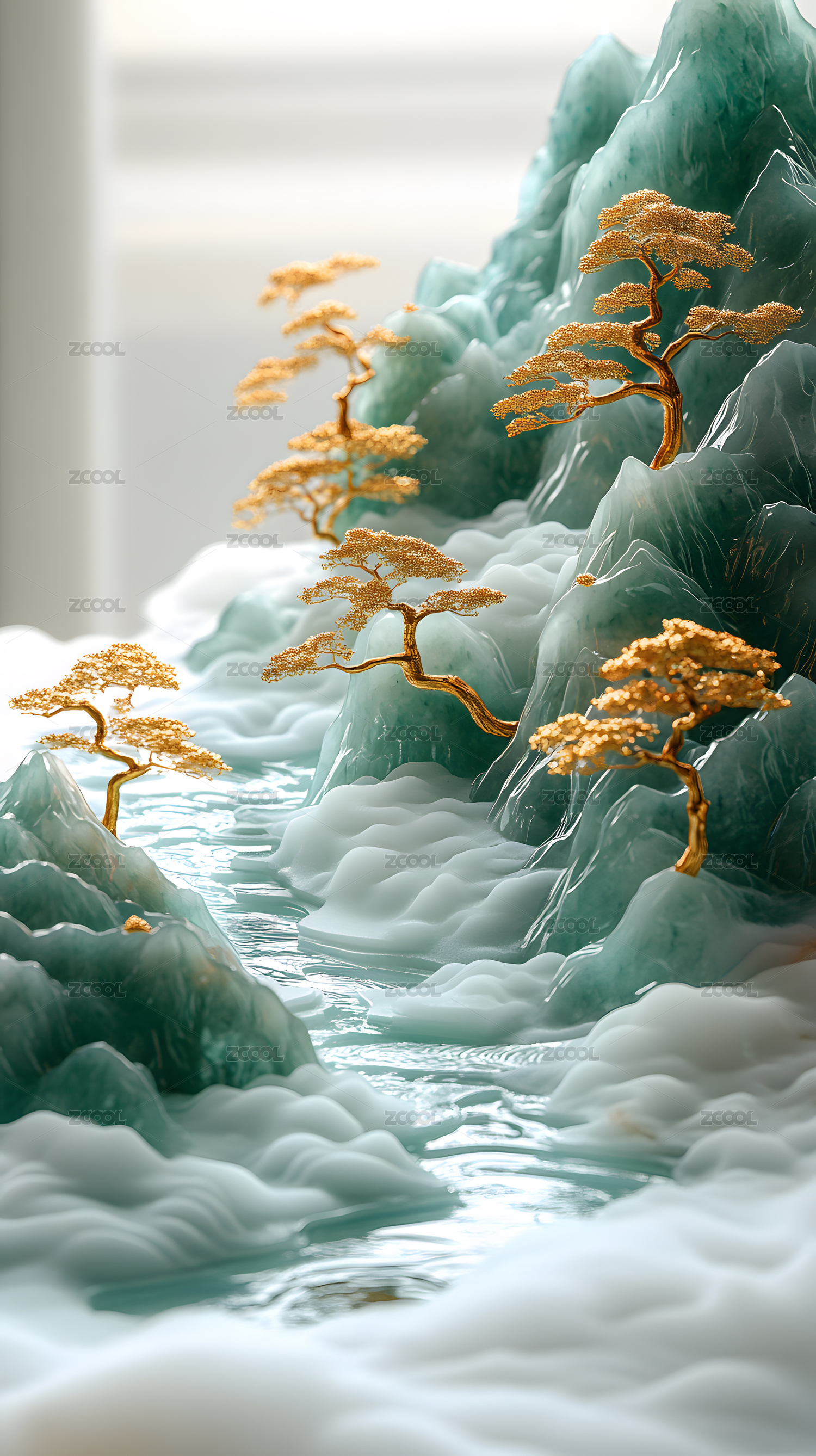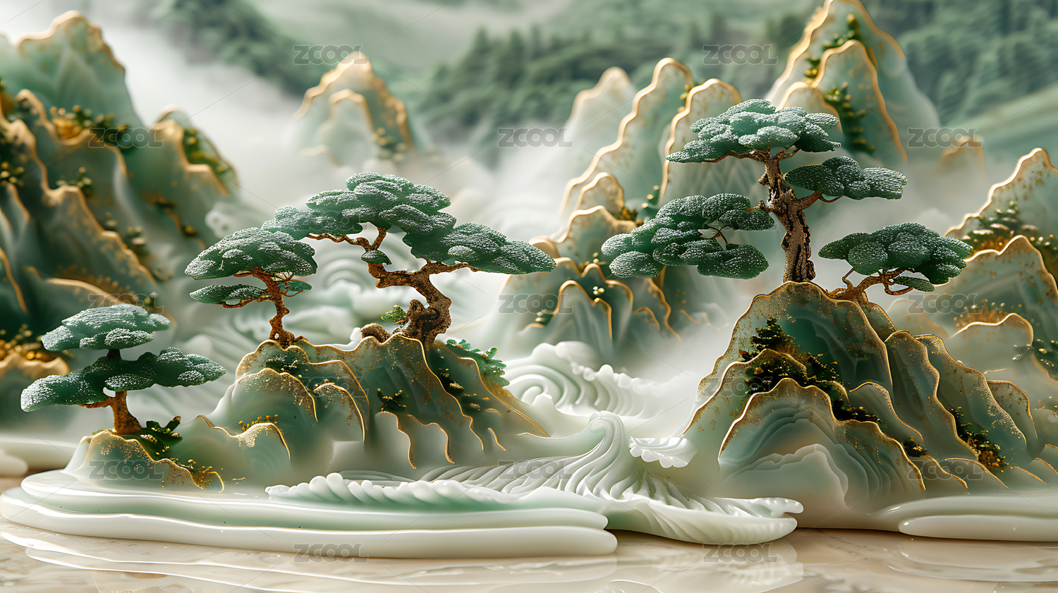 艺术,中国,山水,画,河,山,自然,蓝色,绿色,插画