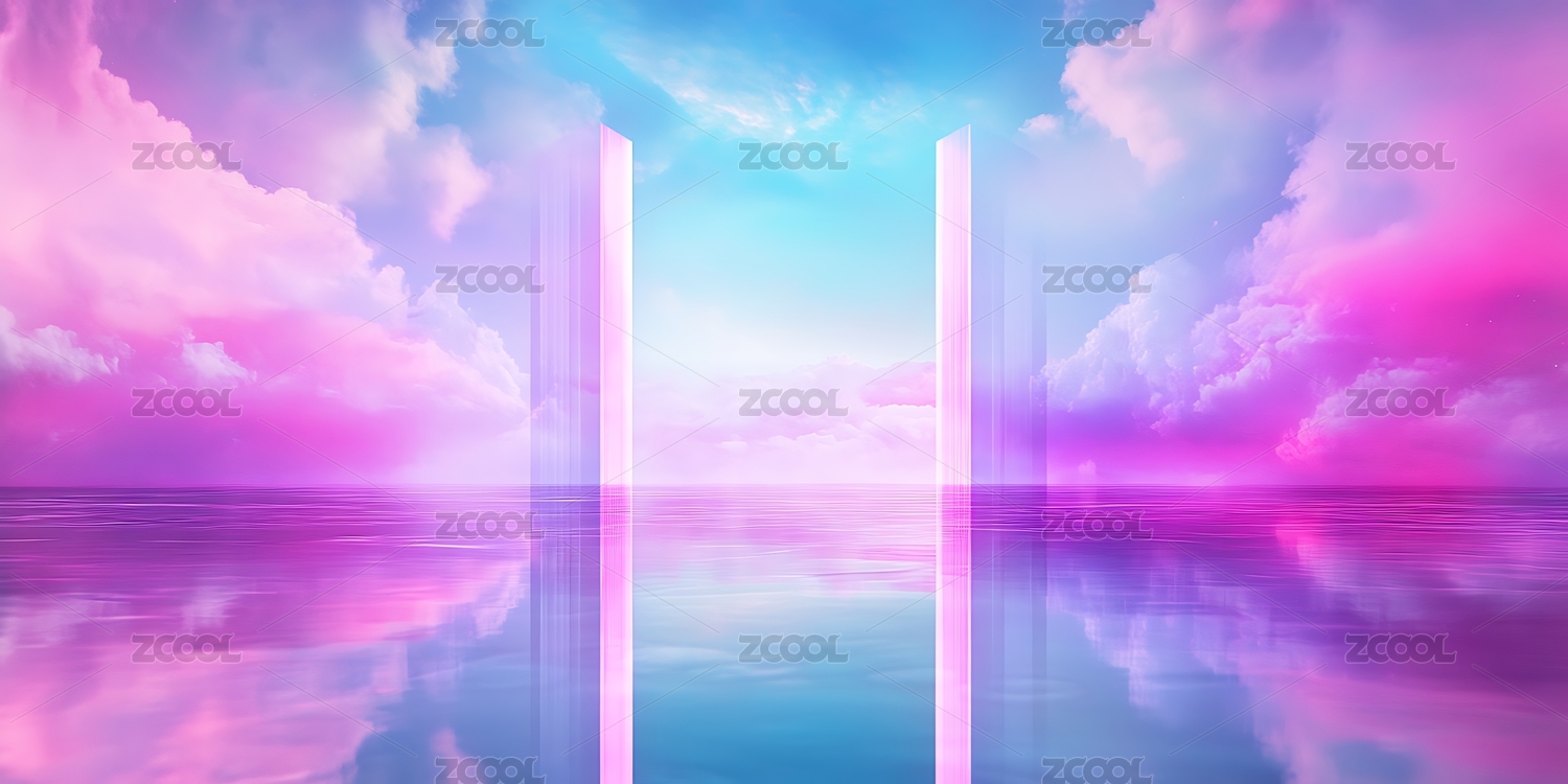 光线,蓝色,反射,粉色,梦幻,天空,色彩,意境,云彩,奇幻