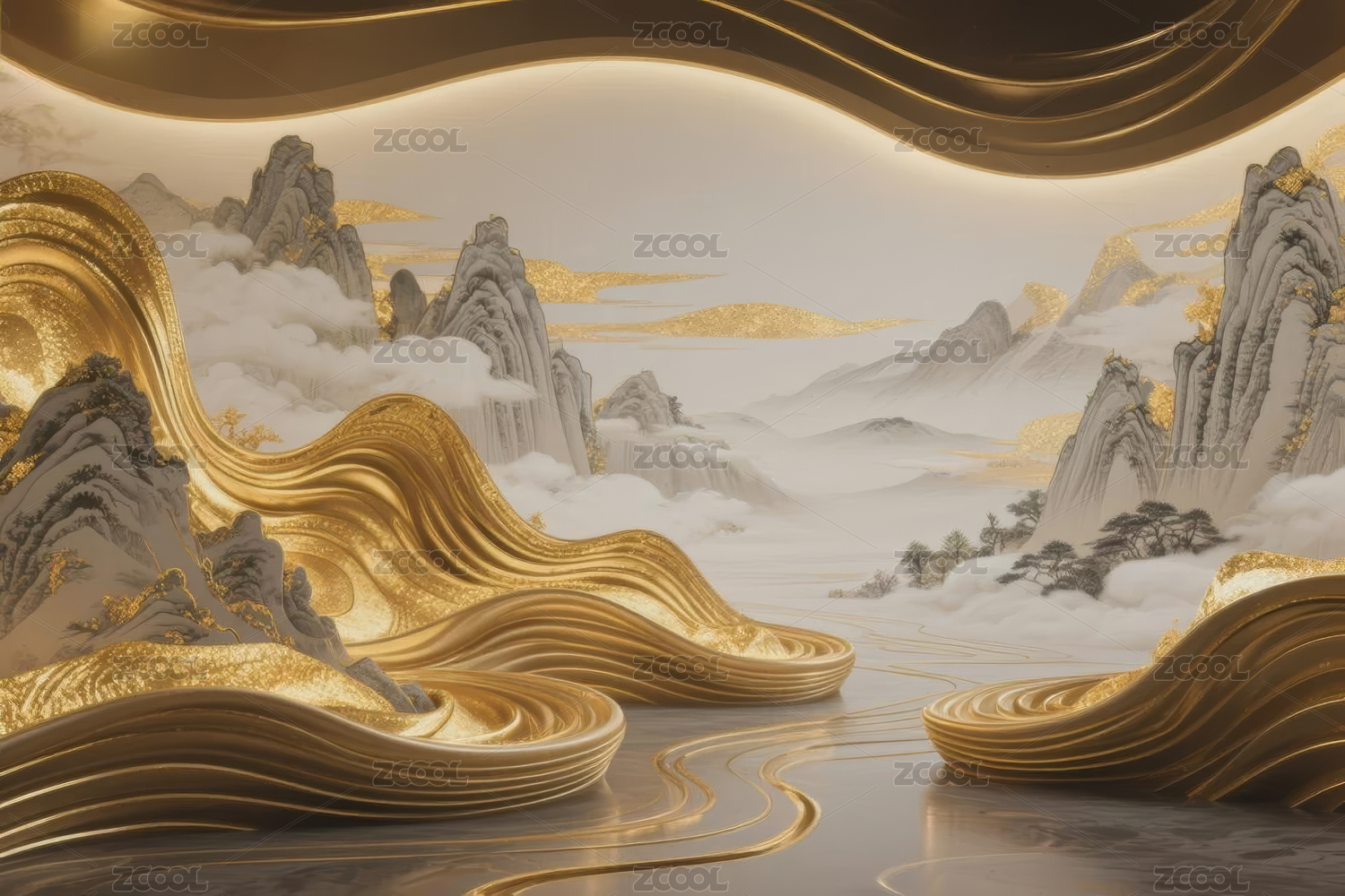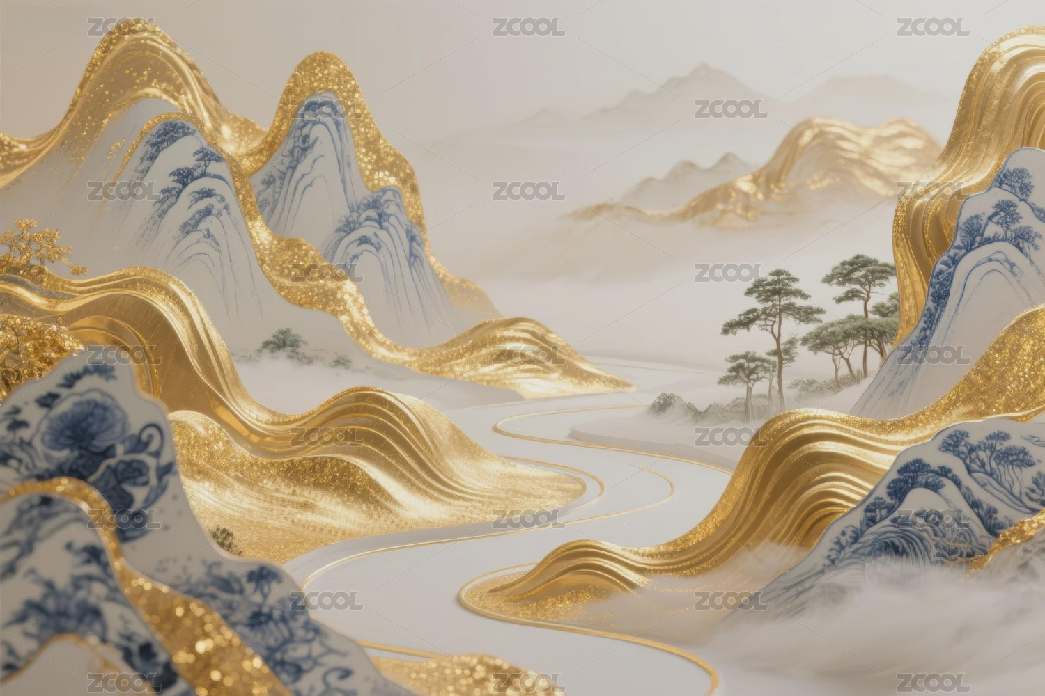 金色山水画卷