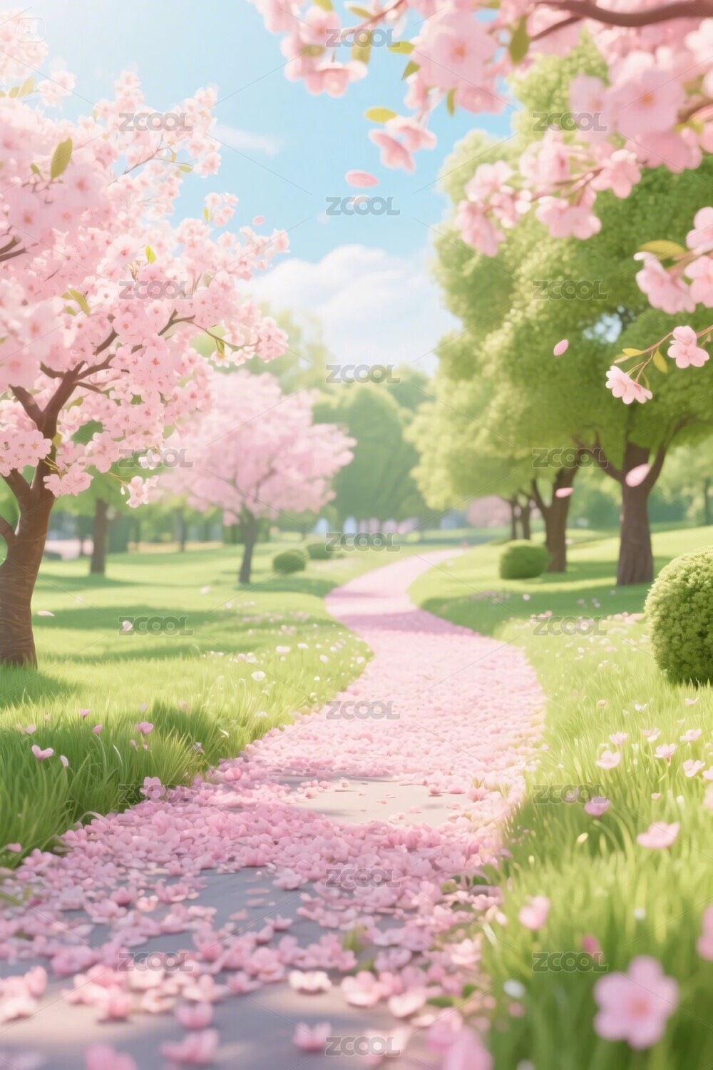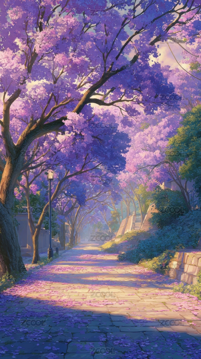 街道,房屋,樱花,花瓣,春天,阳光,石板路,小镇,风景,浪漫