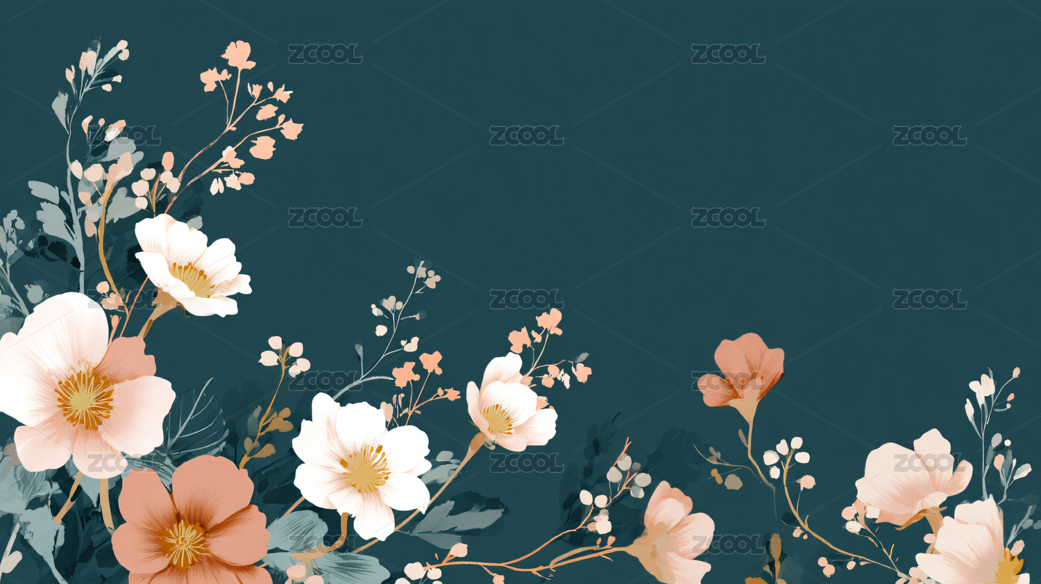 墨绿背景花卉