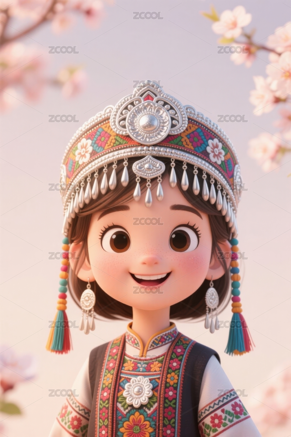 中国风3D卡通少数民族少女插画