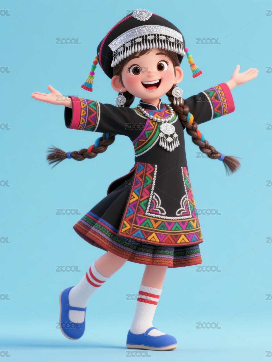 卡通女孩少数民族服饰