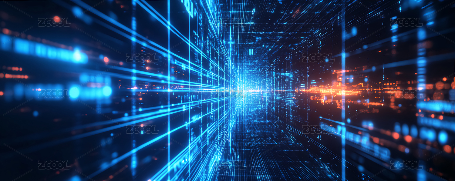 蓝色光影线条构成的数据通道