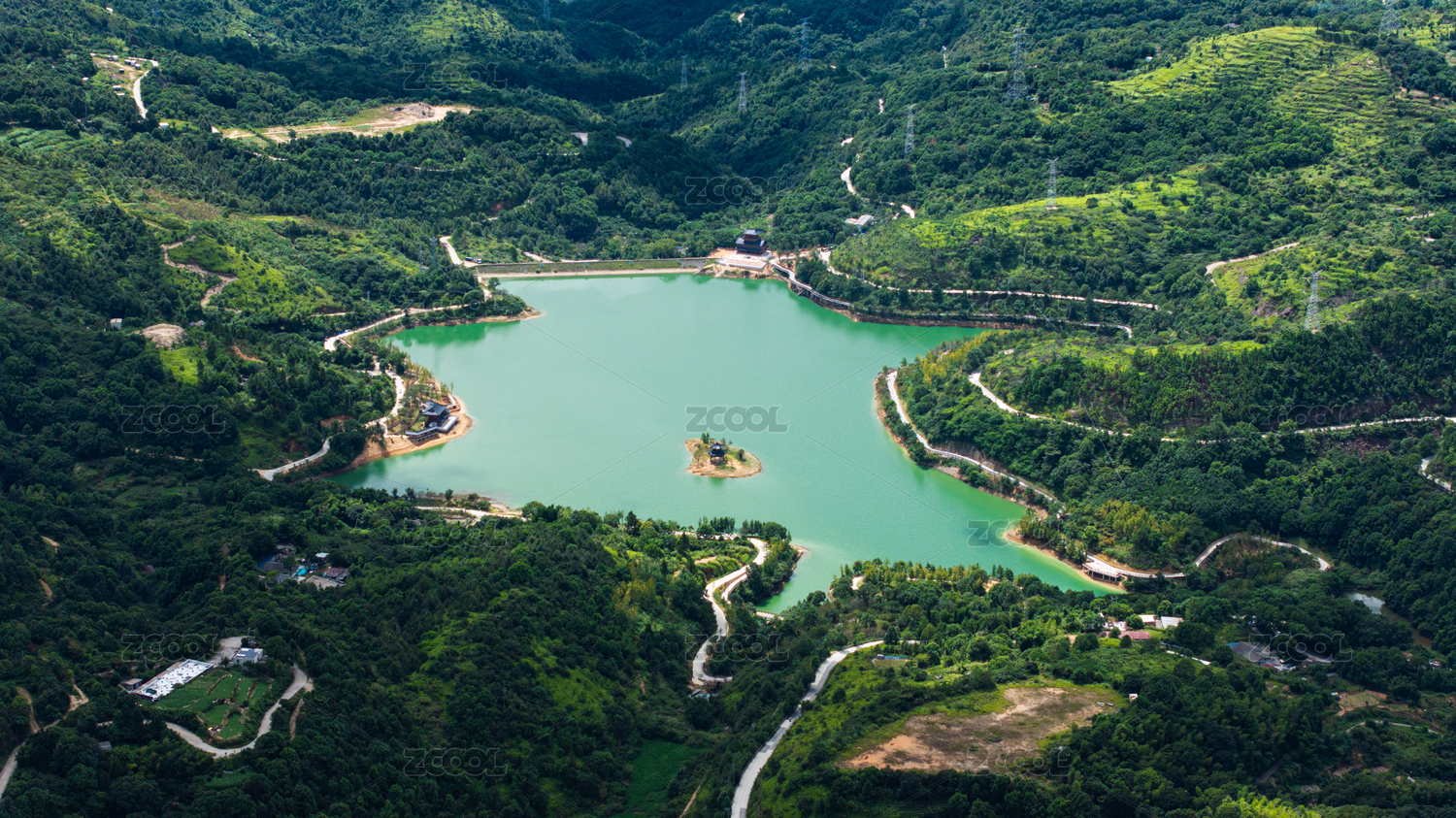 中国广东茂名信宜大田顶水库白天风光