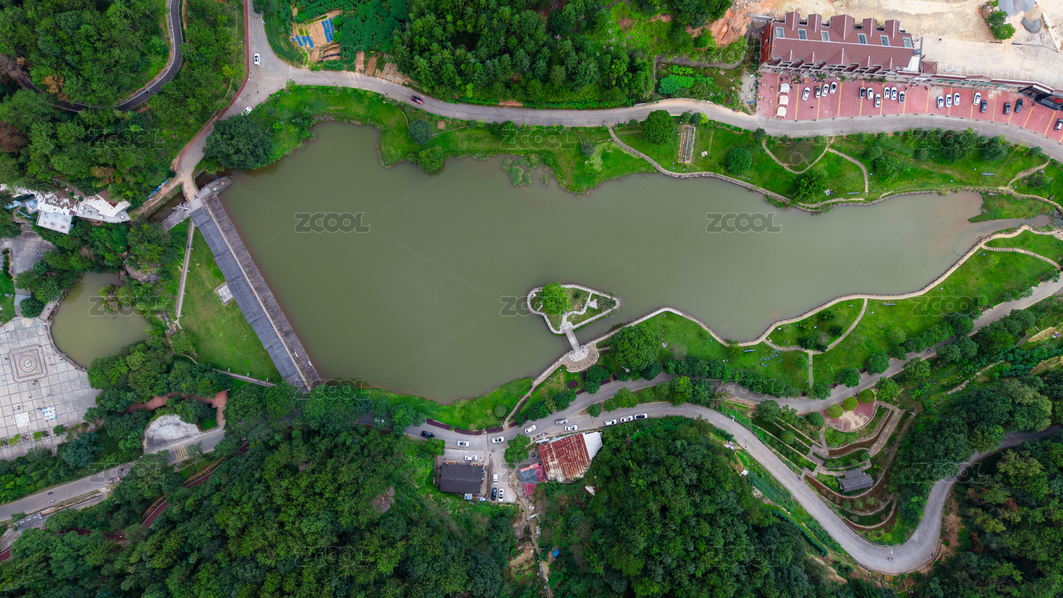 中国浙江绍兴上虞大香林兜率天宫旁湖泊