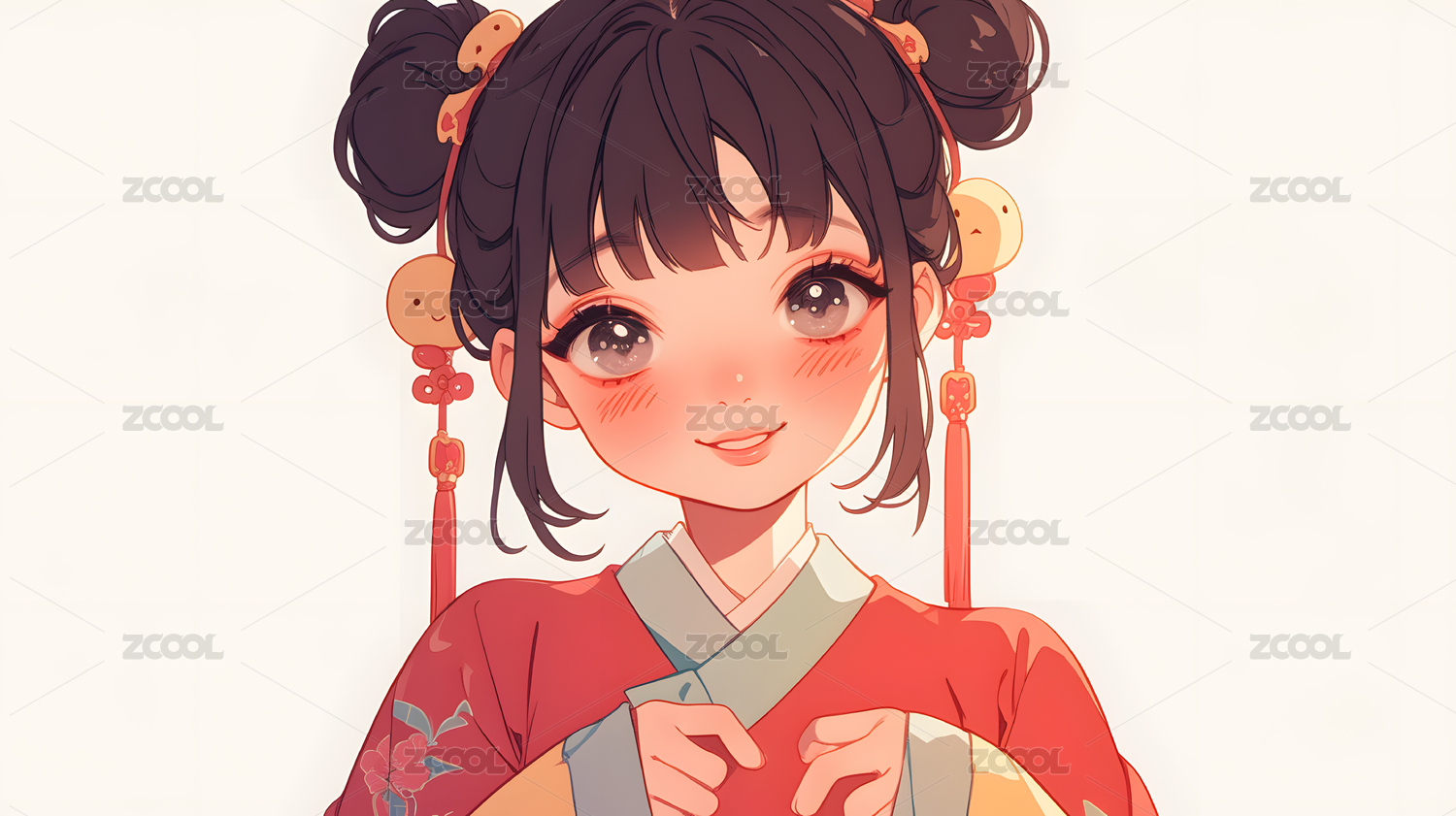 身着汉服的可爱卡通少女