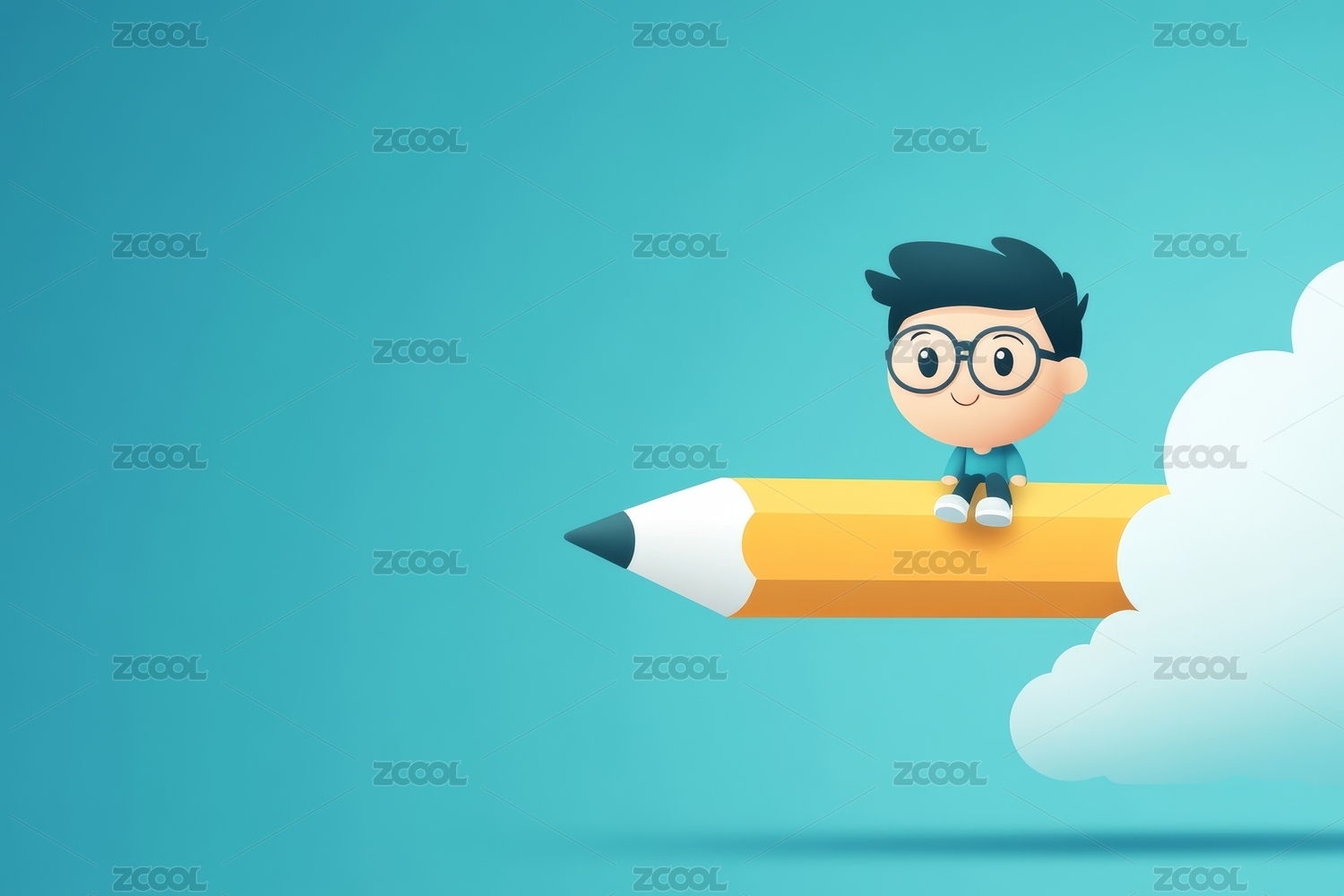 男孩乘铅笔飞翔