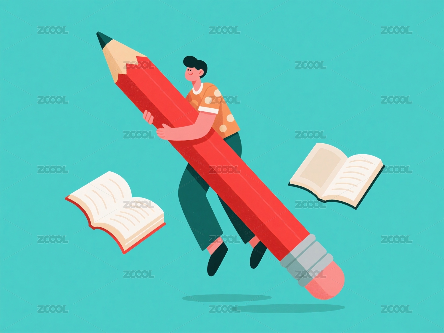 拥抱巨型铅笔阅读书籍