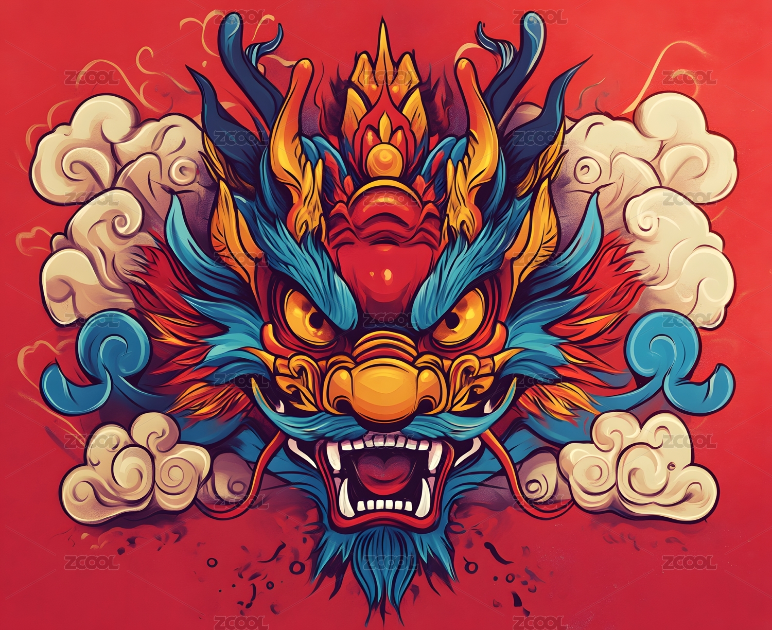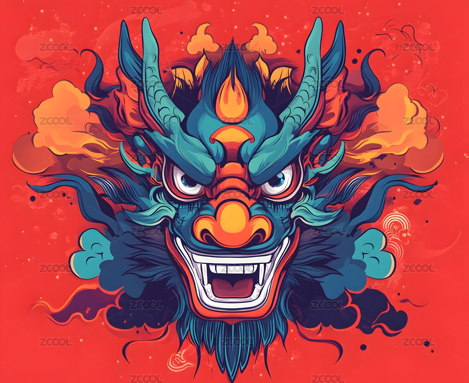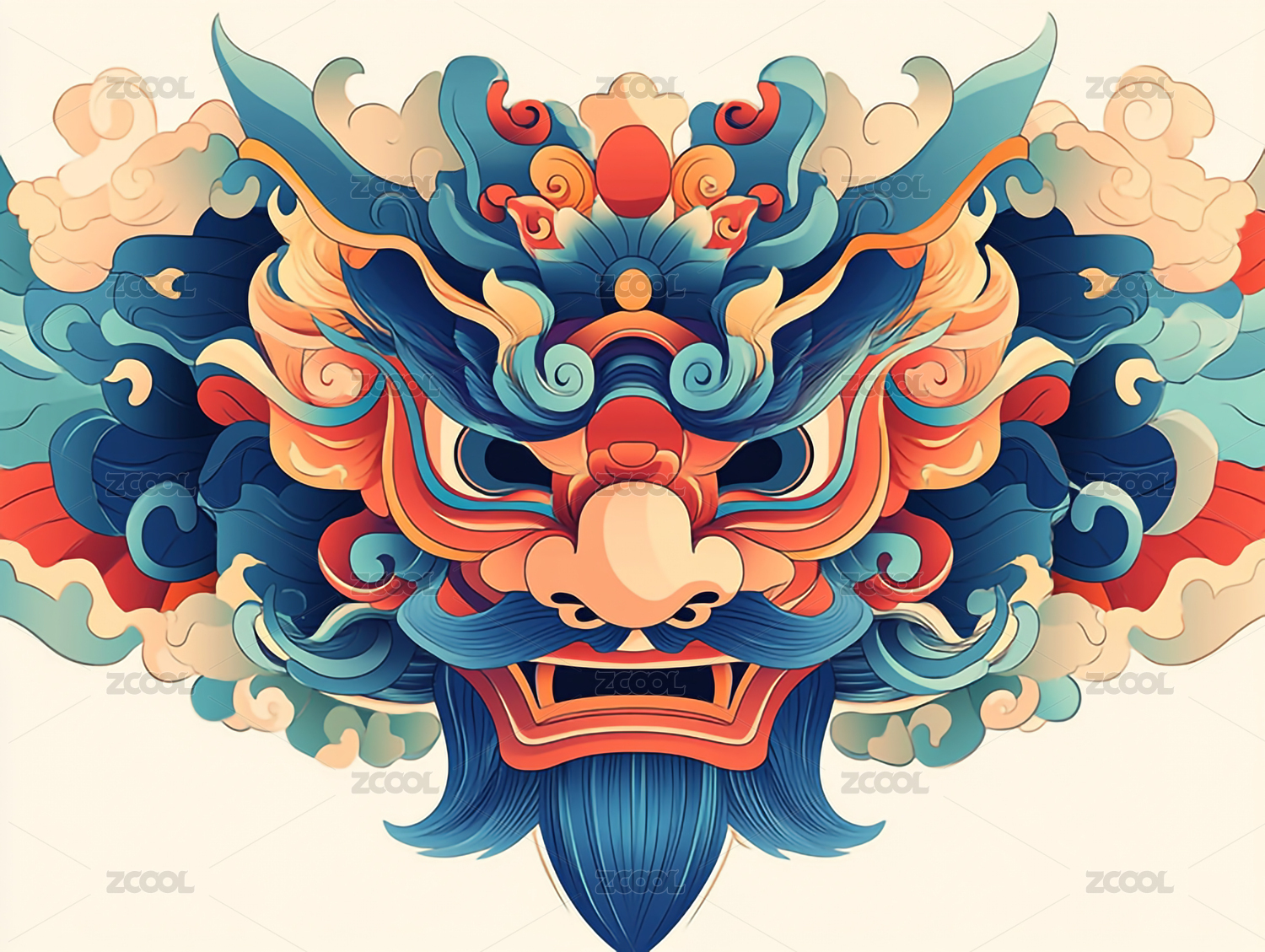 国潮风卡通插画龙头