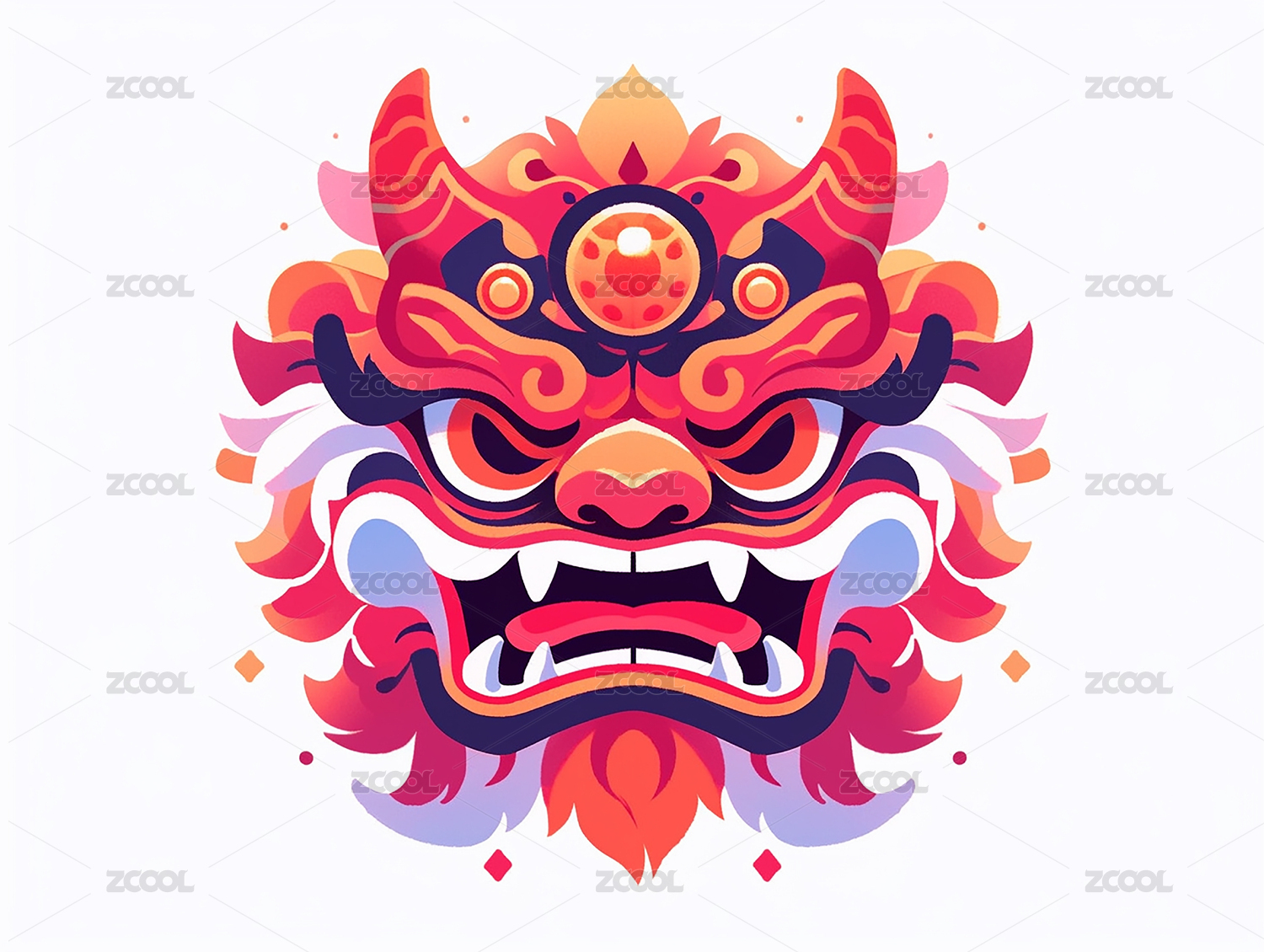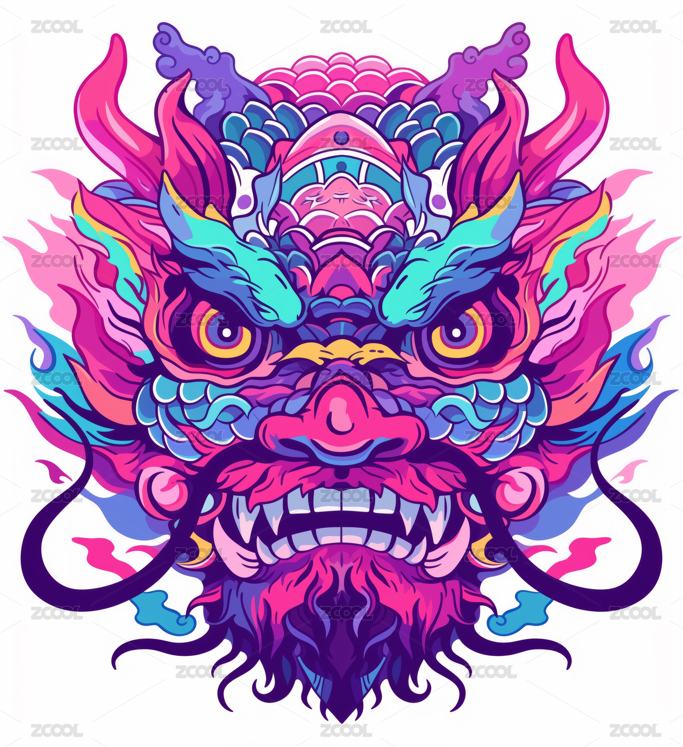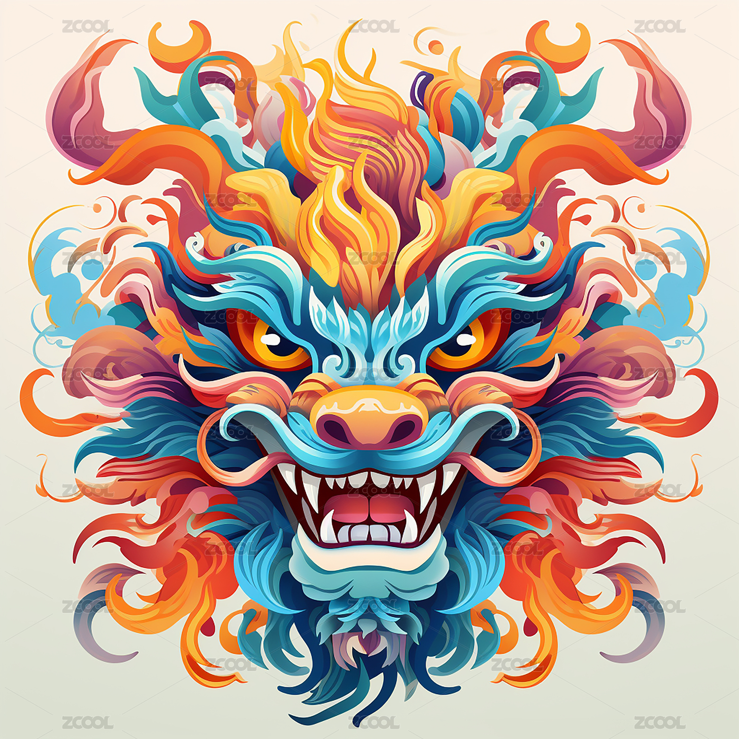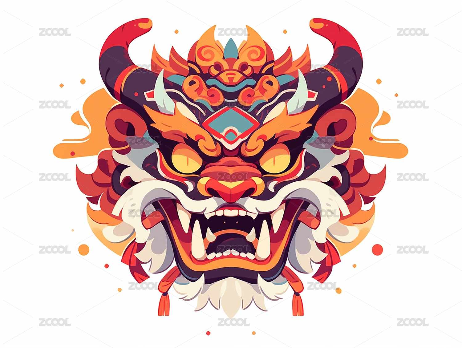 剪纸风彩色龙头