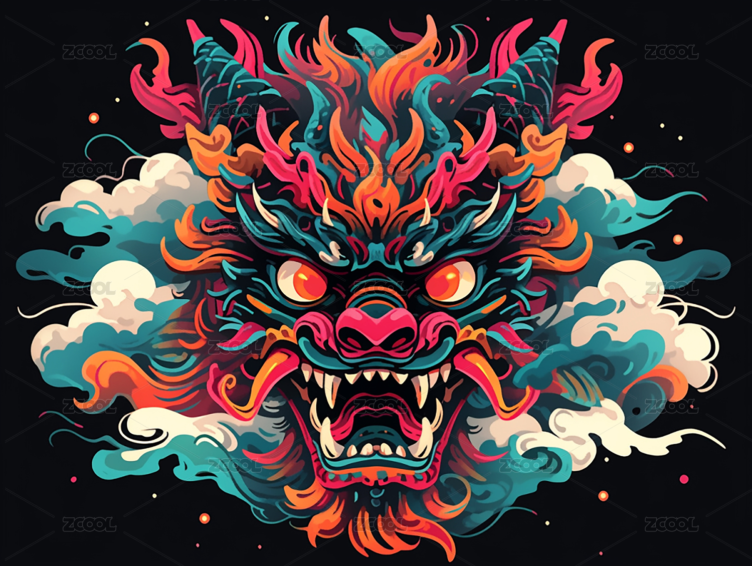 时尚酷炫潮流龙头插画