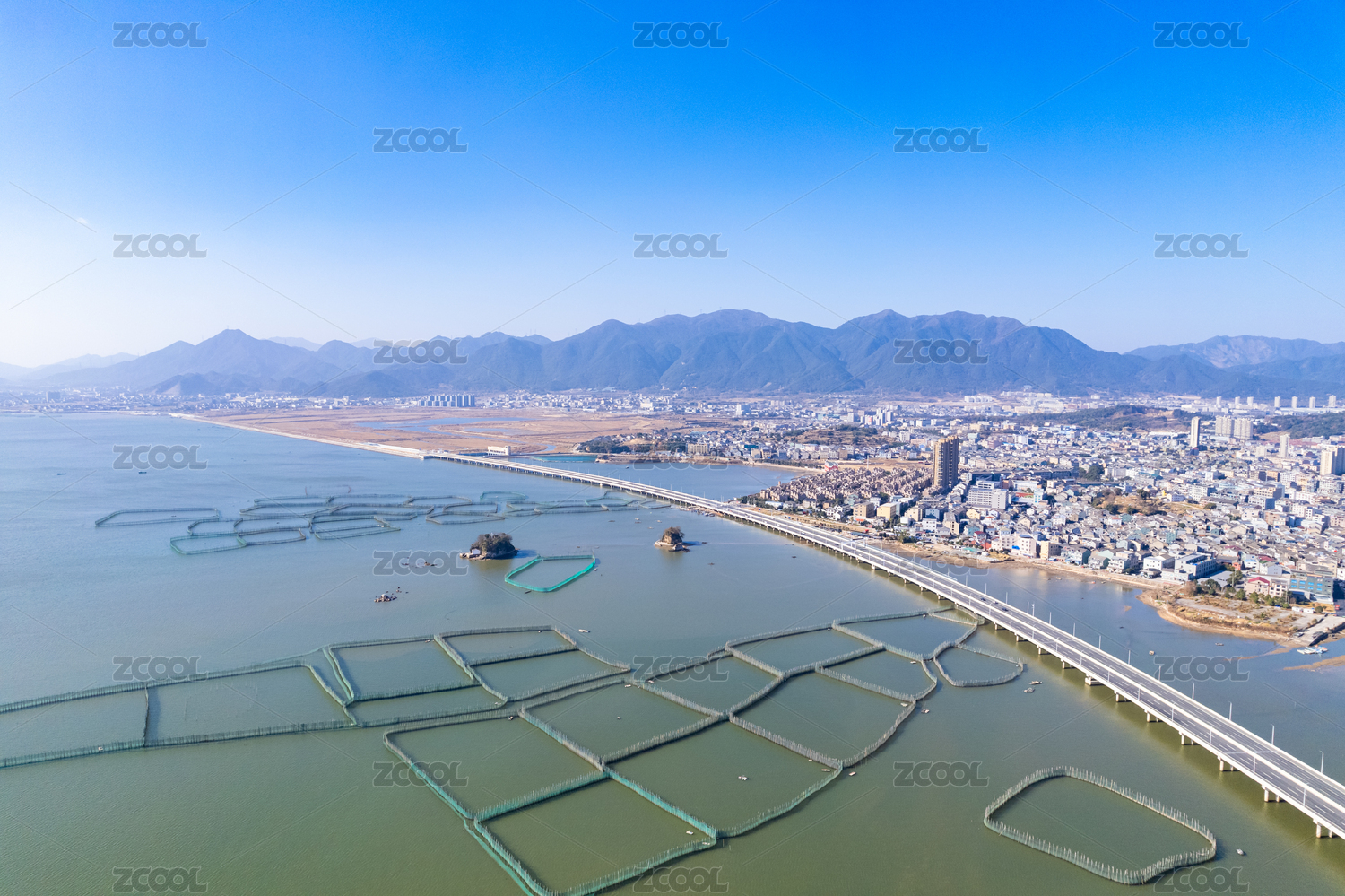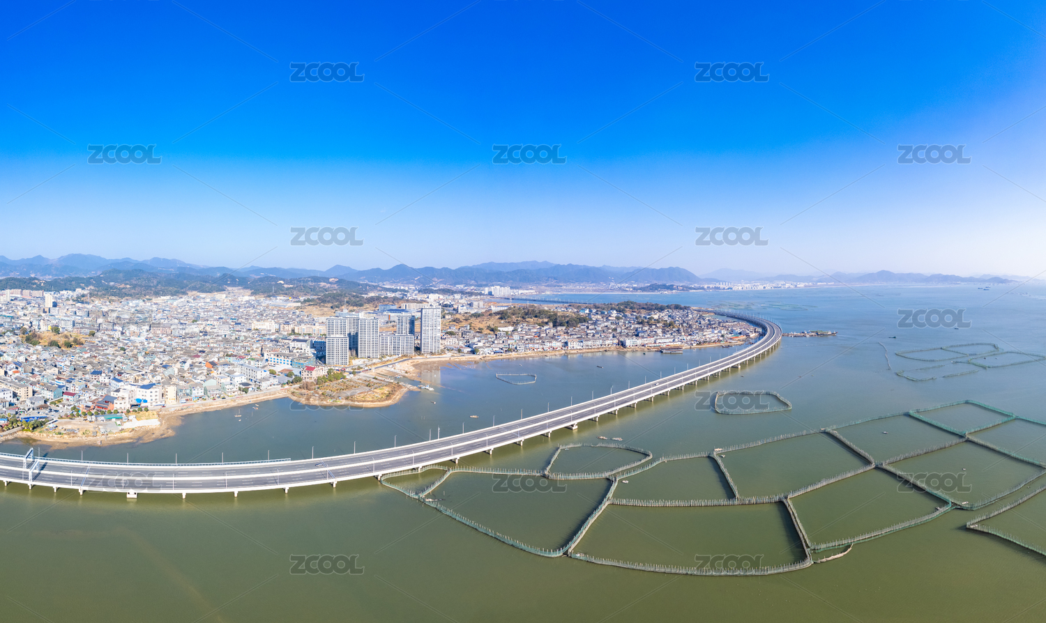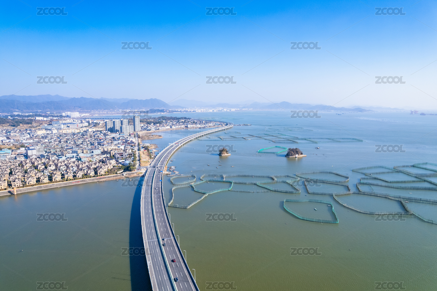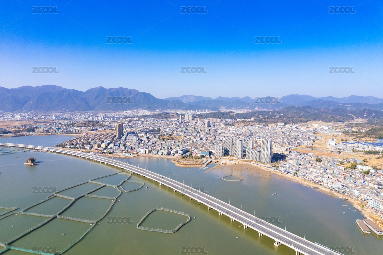 宁波宁海西店海上公路与城镇建筑航拍风景