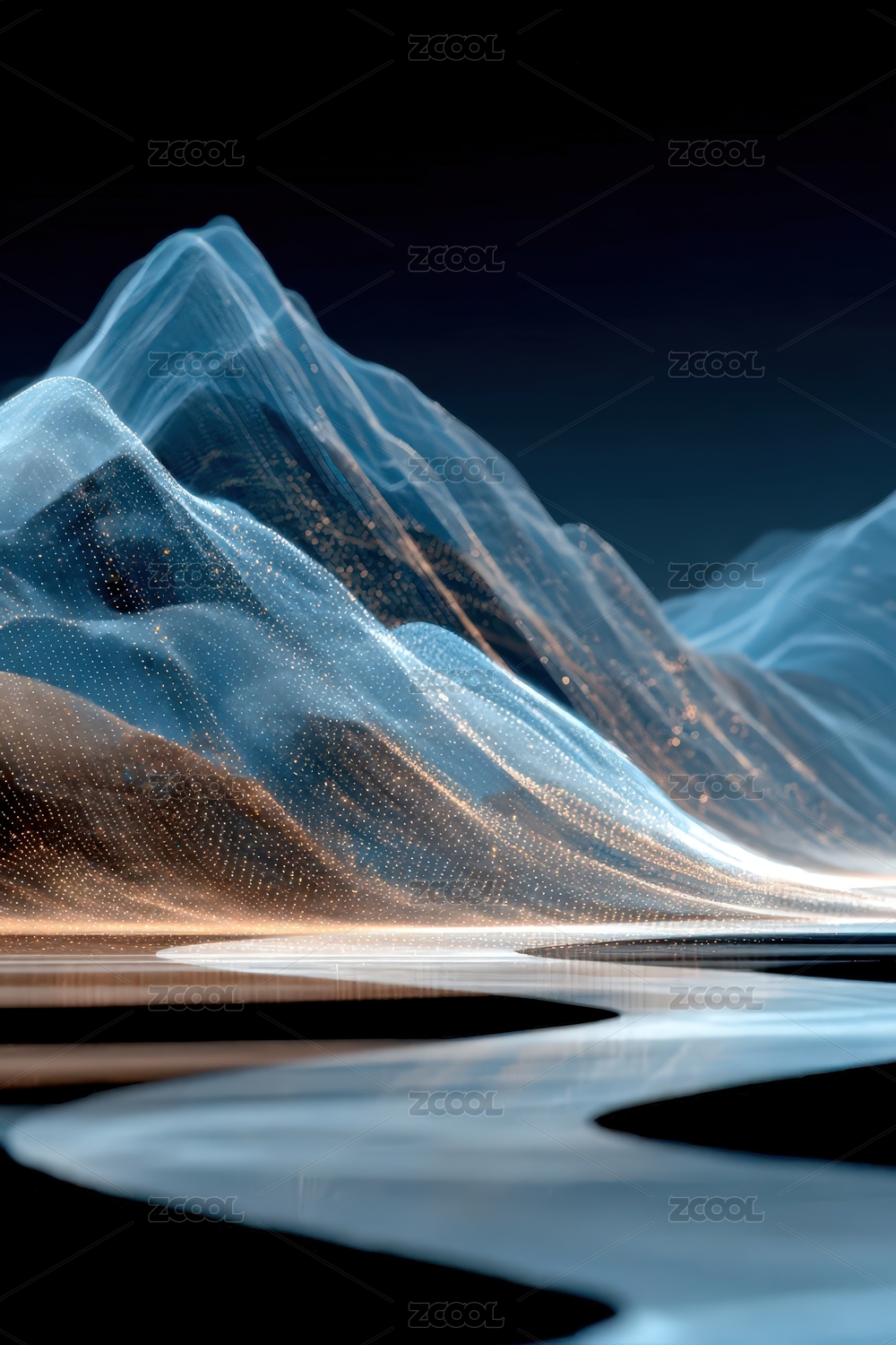 科技感山脉与水的抽象艺术