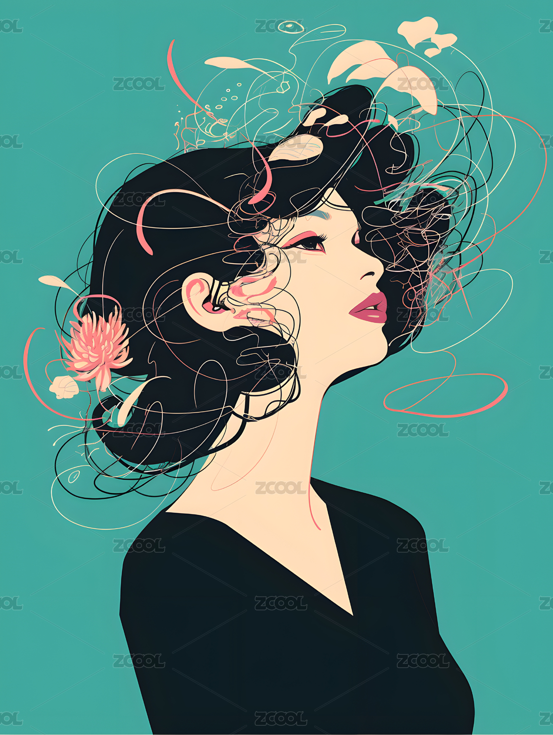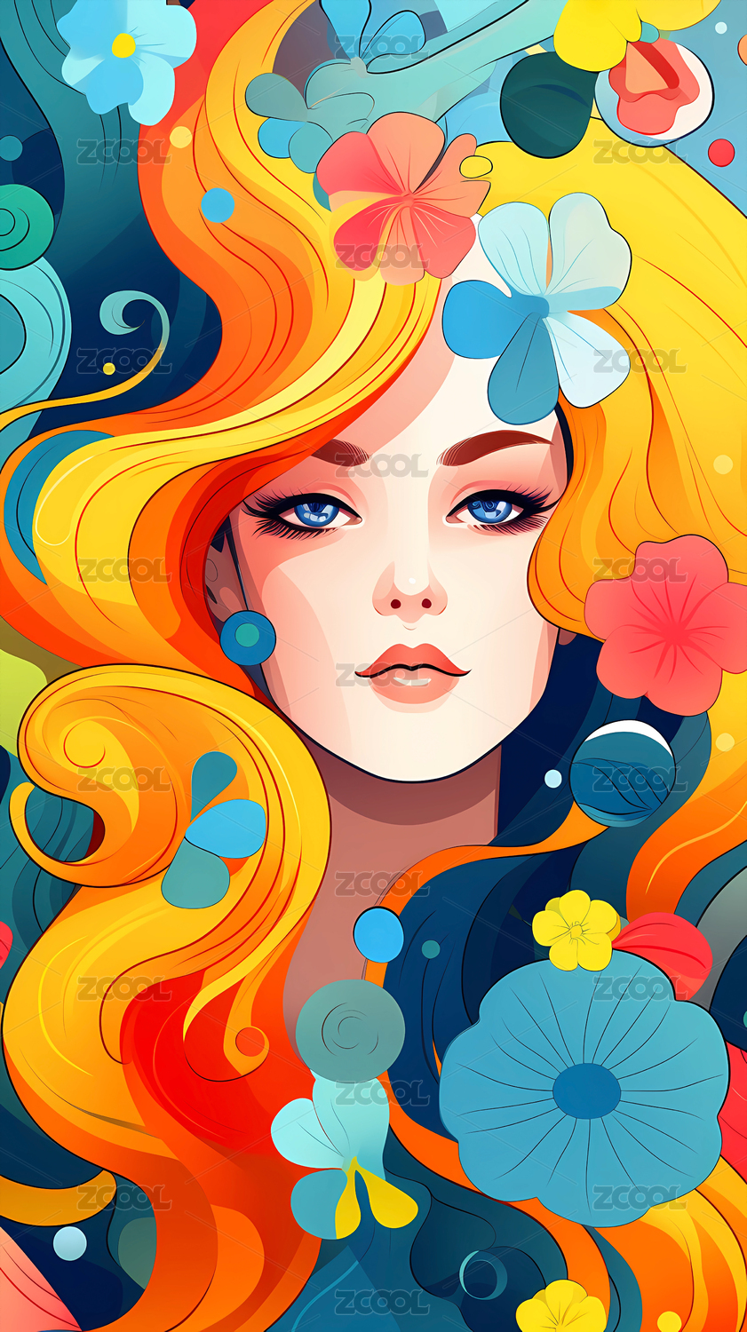 女,女生,女孩,女神,女性,人物,插画,色彩,扁平,现代