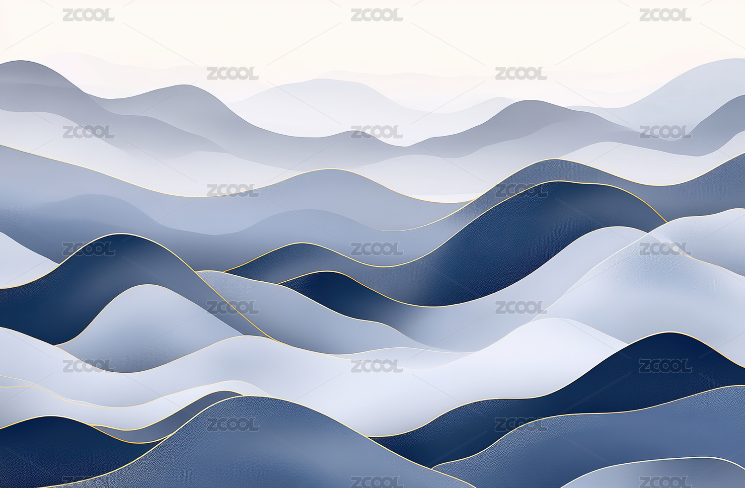 中国风,山水画,山水,背景,插画,蓝色,写意,意境,新中式,水墨