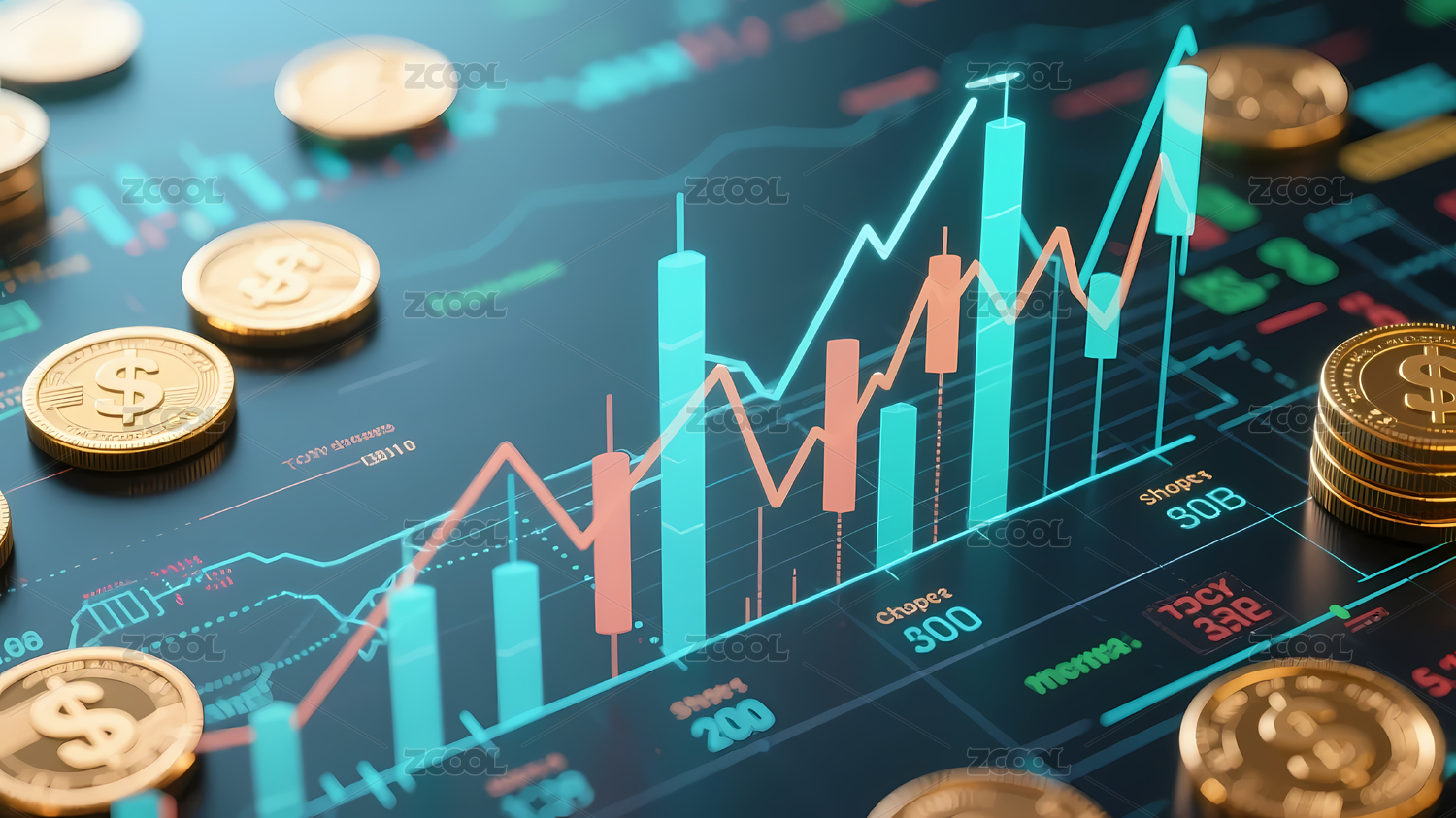 股市图表金币涨跌