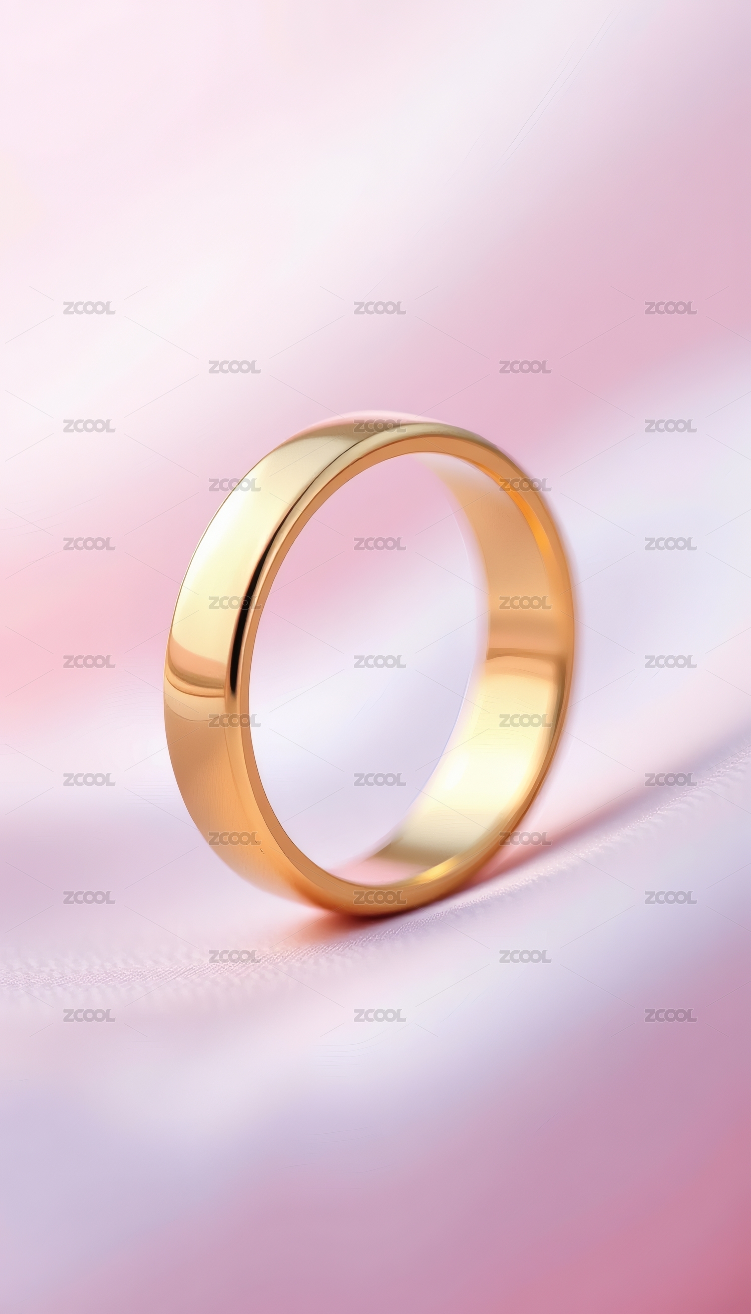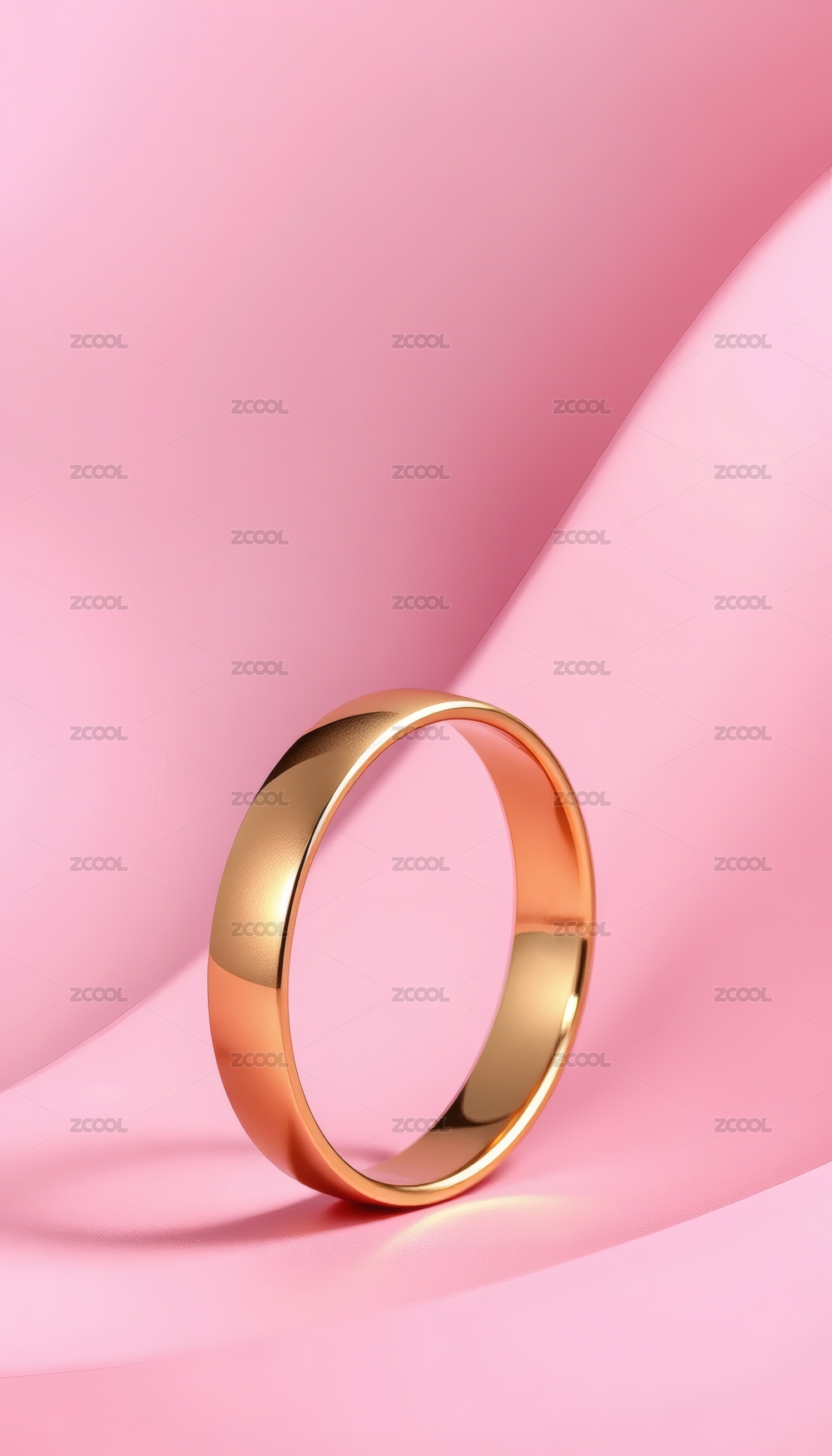 金色光滑戒指置于柔粉色背景