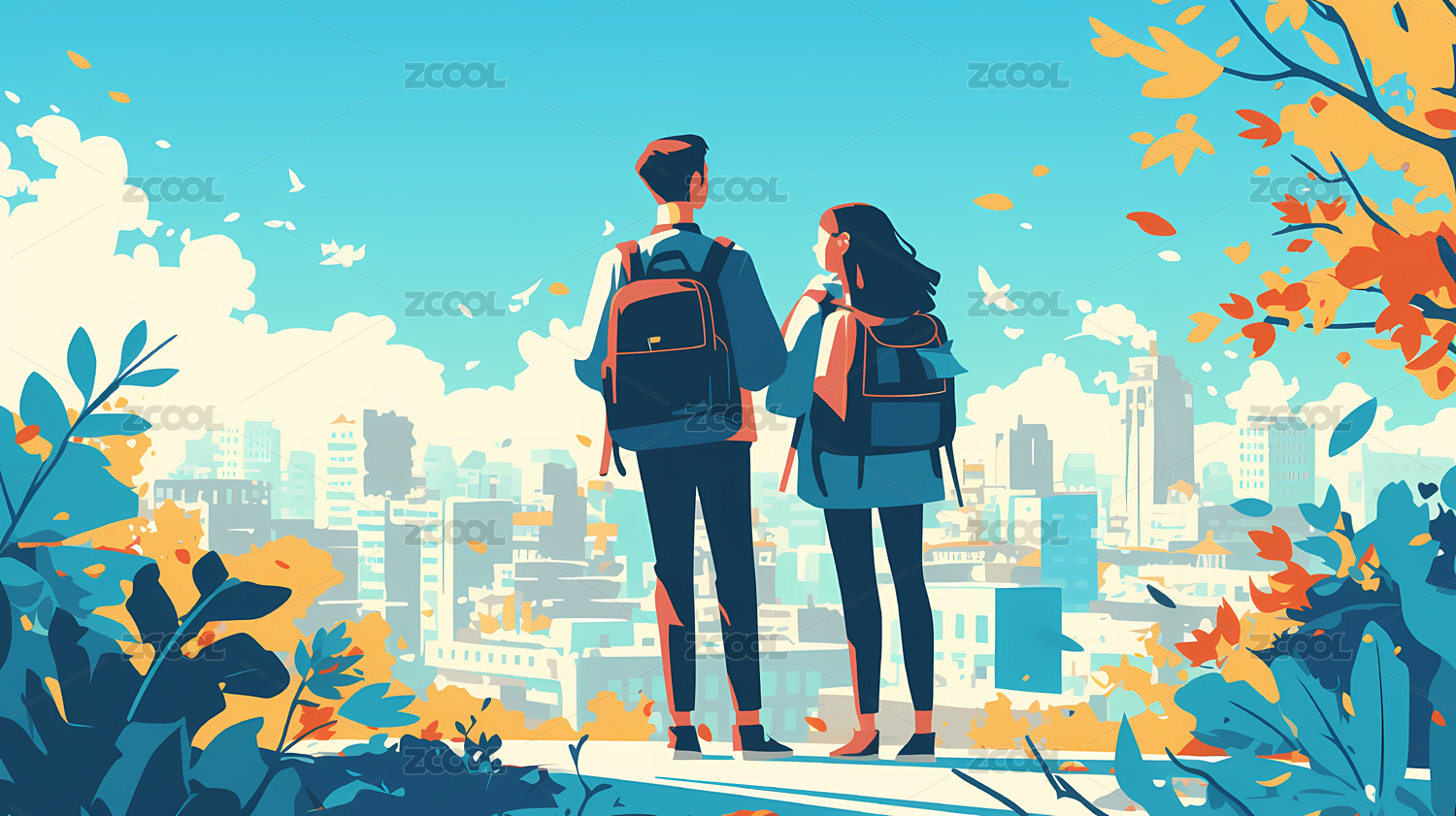 秋天秋游立秋秋分户外活动运动卡通漫画插画