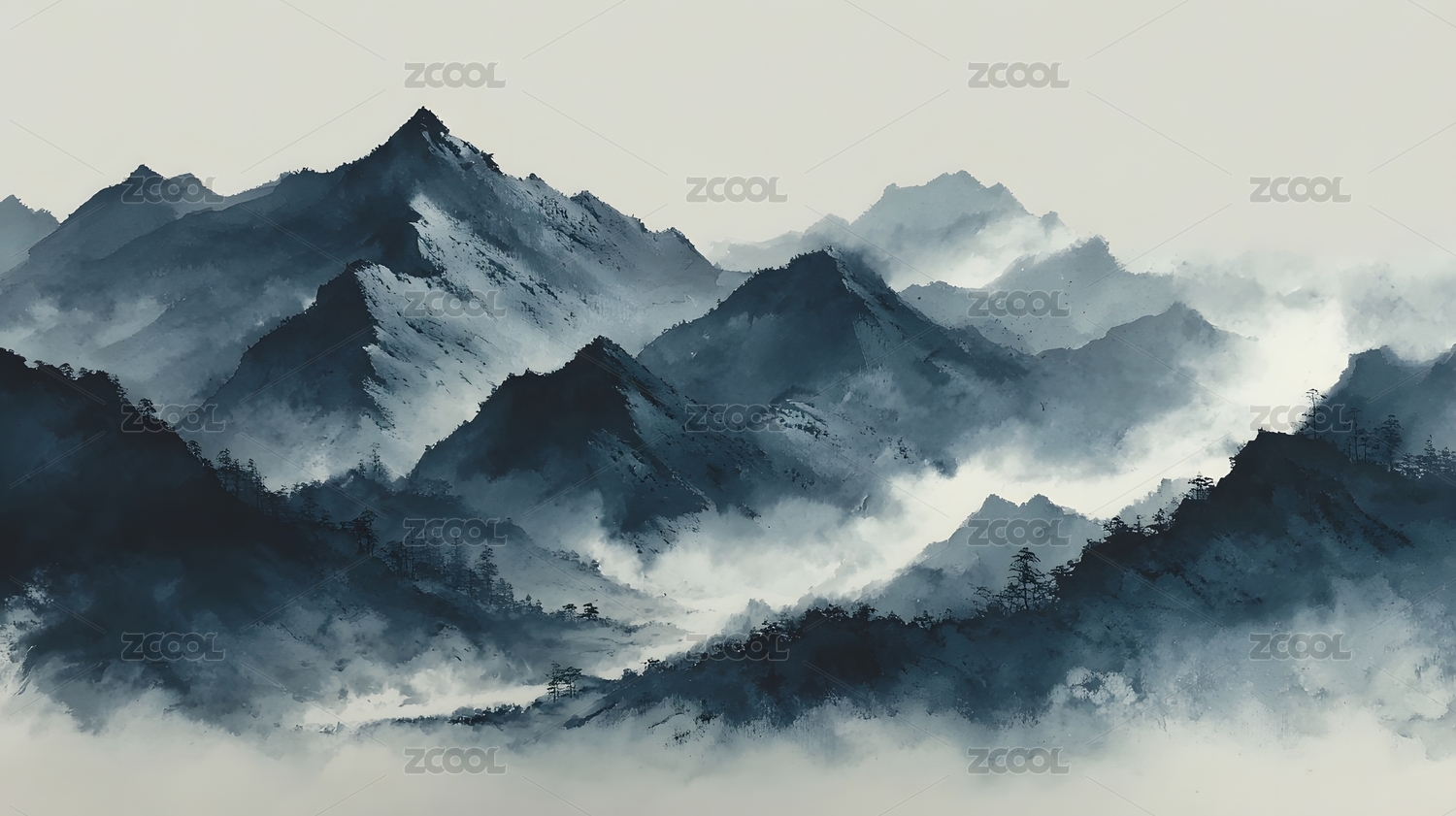 自然, 简约,水墨画, 黑白, 传统, 艺术, 淡雅, 意境, 山峰, 中国风