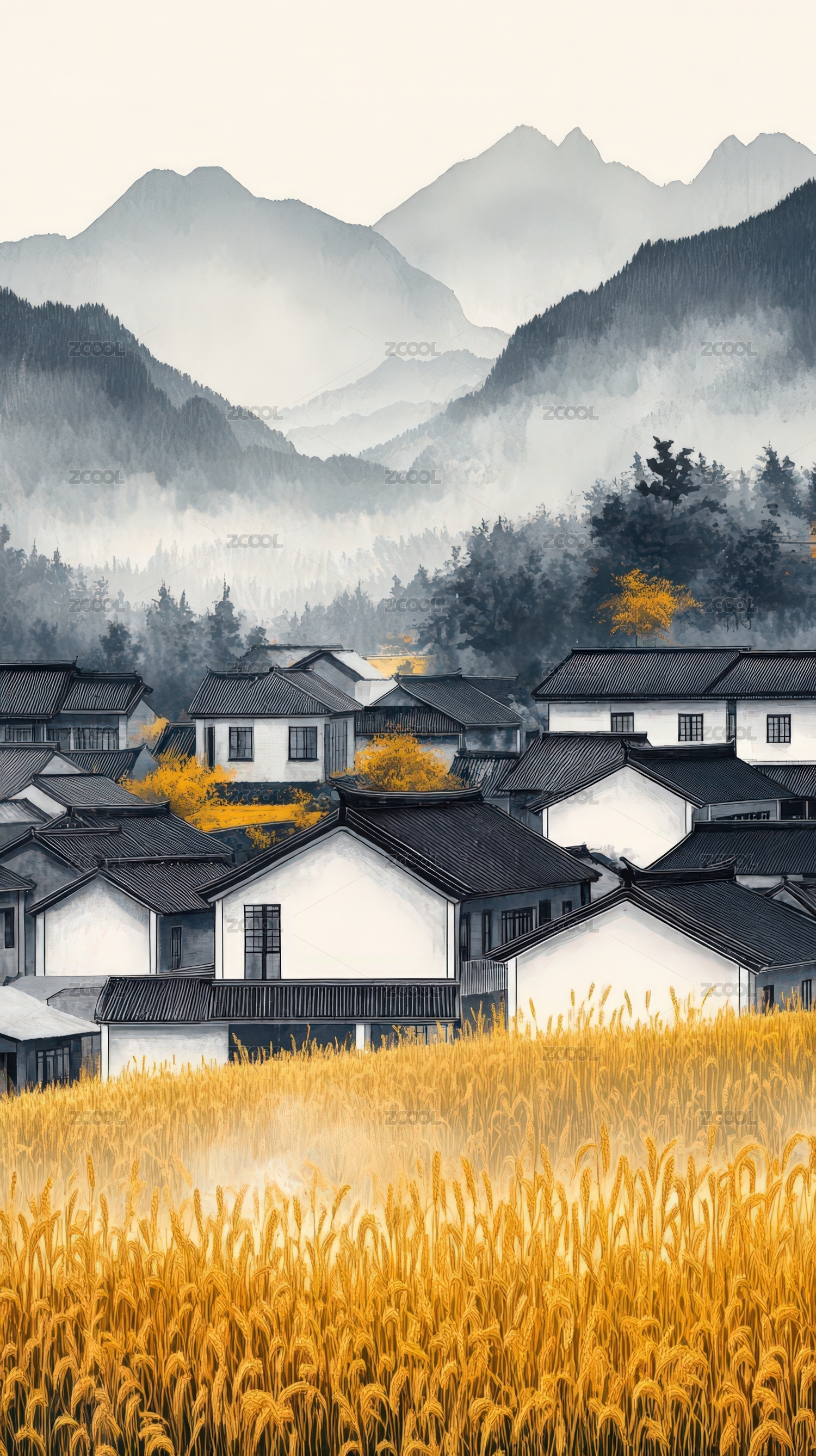 梯田,山脉,风景,水彩,油画,插画,艺术,自然,景色,山峦