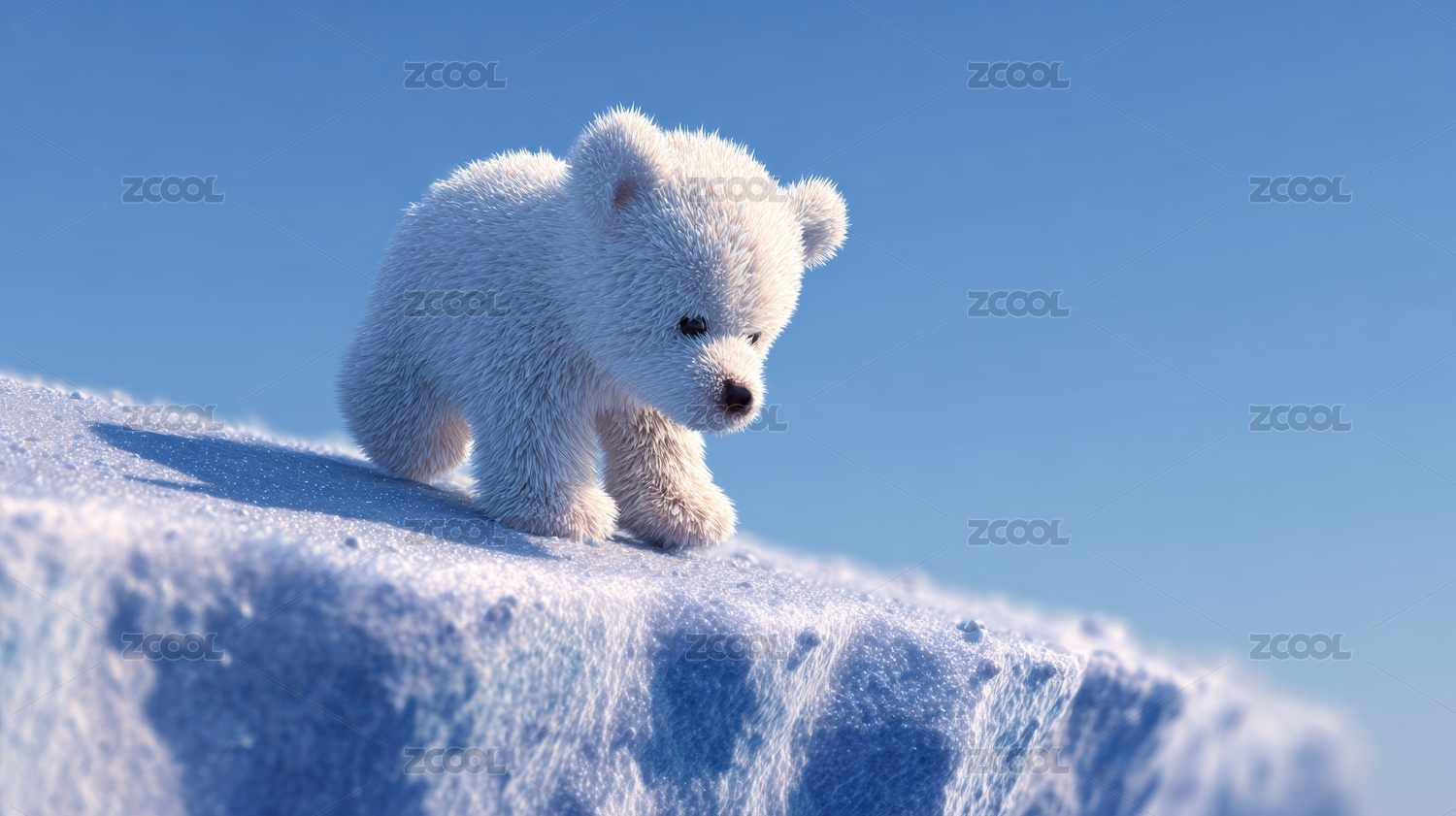 北极熊可爱唯美野生动物3D卡通插画壁纸