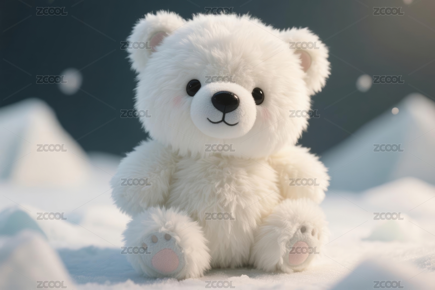 白熊玩偶治愈感雪地场景