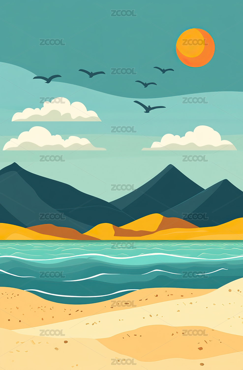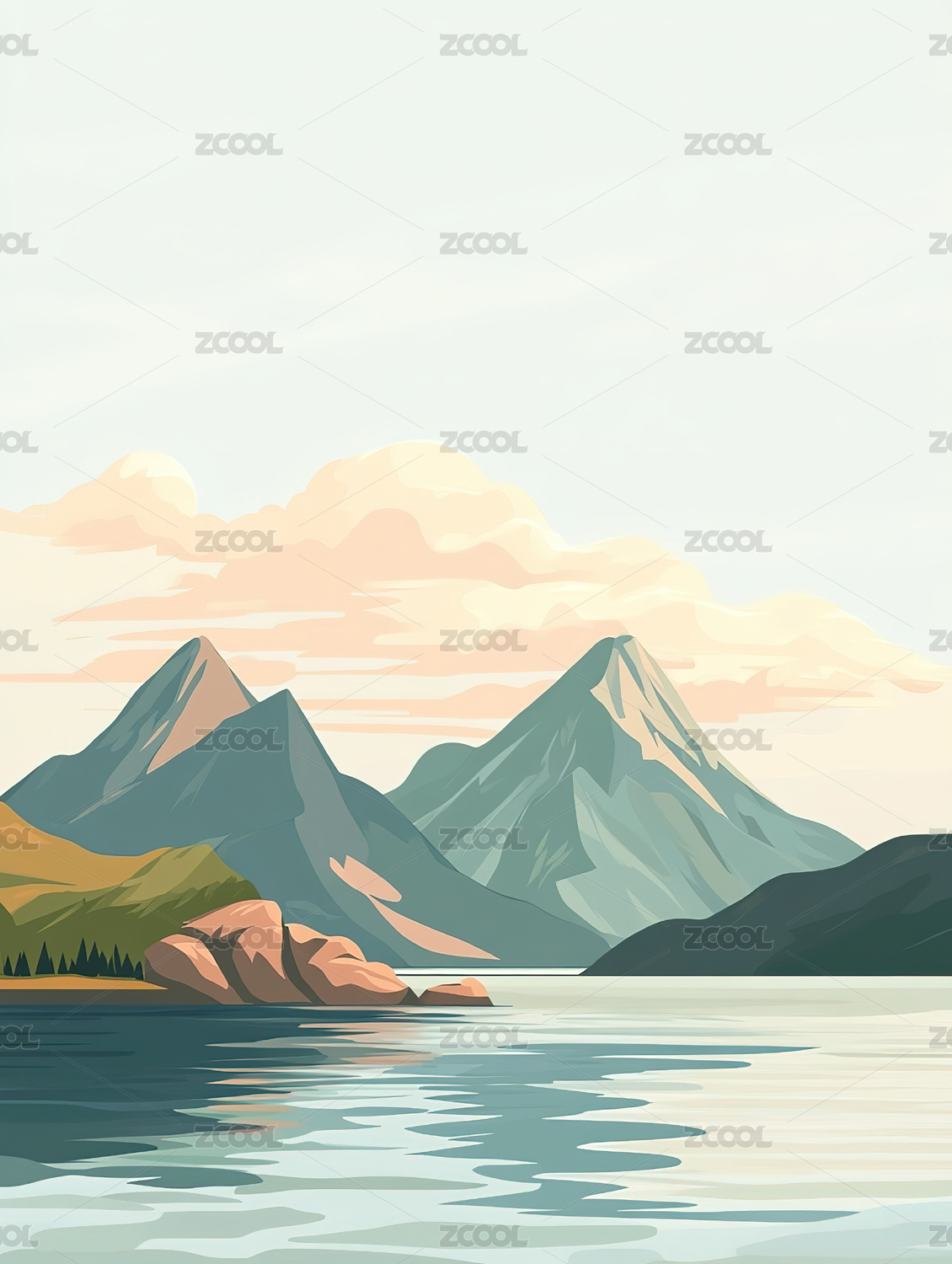 山,高原湖泊,高山,湖泊,背景,插画,插图,风景,风光,矢量