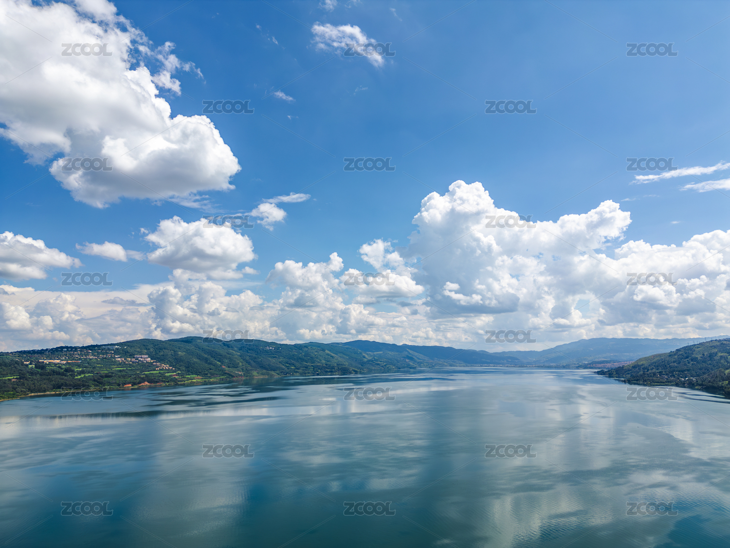 山水风光,蓝天白云,绿树,湖泊,自然景观,开阔,宁静,优美,清新,天空