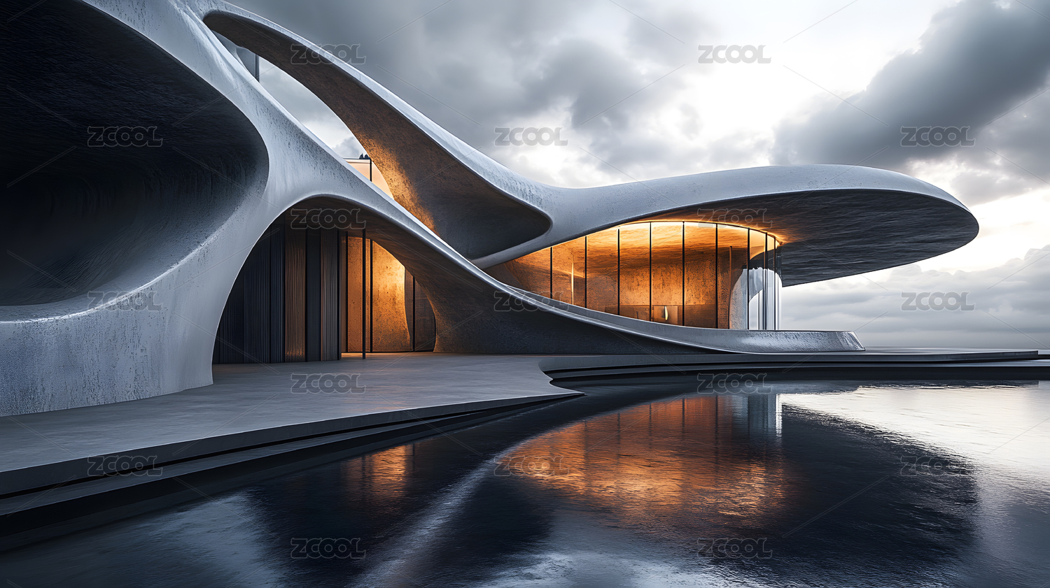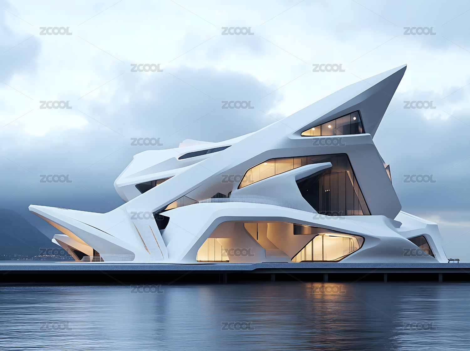 未来,设计,建筑,房屋,灯光,山脉,豪宅,湖泊,现代,夜景