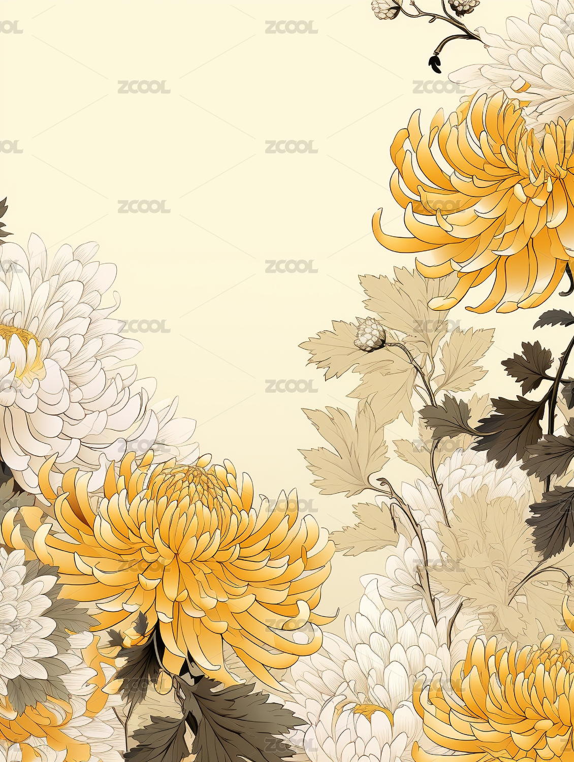 国潮风菊花元素背景图