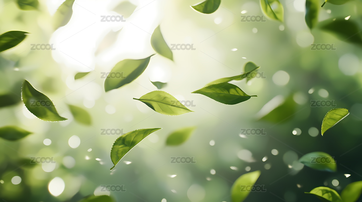 背景,生机,光影,绿叶,绿色,自然,清新,朦胧,飘落,空中
