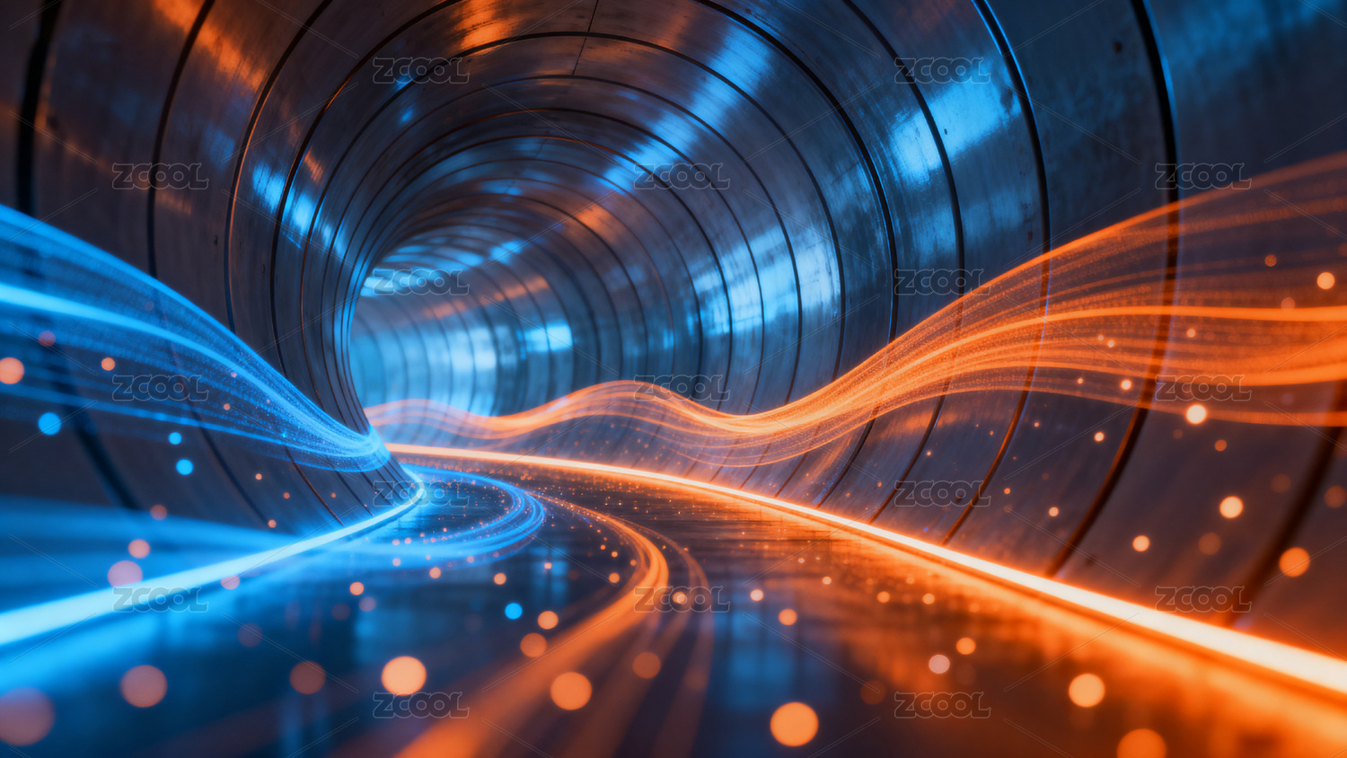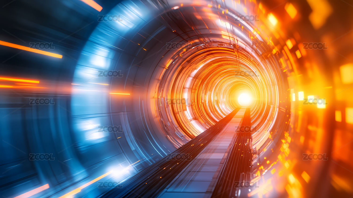 一个高速运动的蓝色和橙色光线组成的通道
