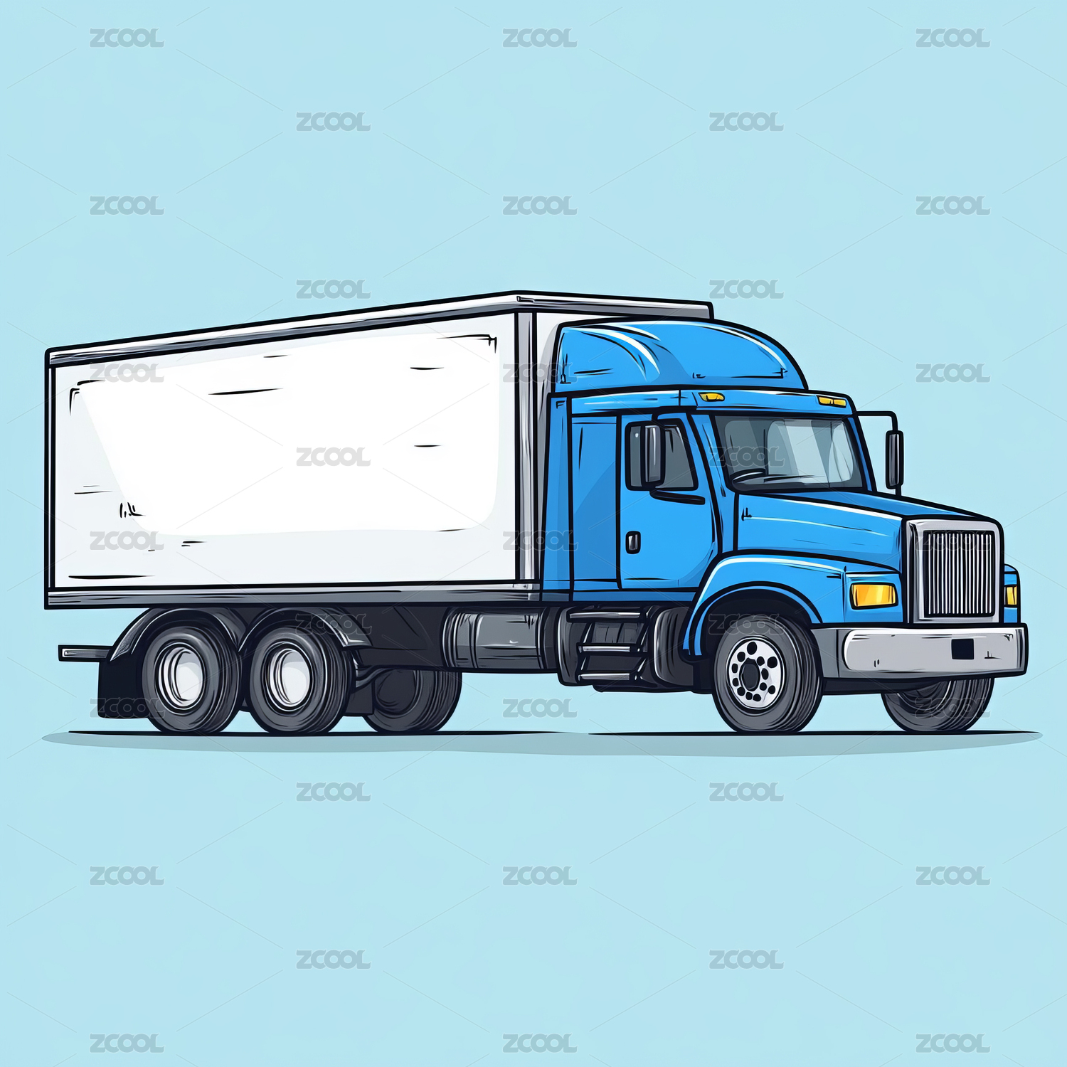 有大货箱蓝色卡车