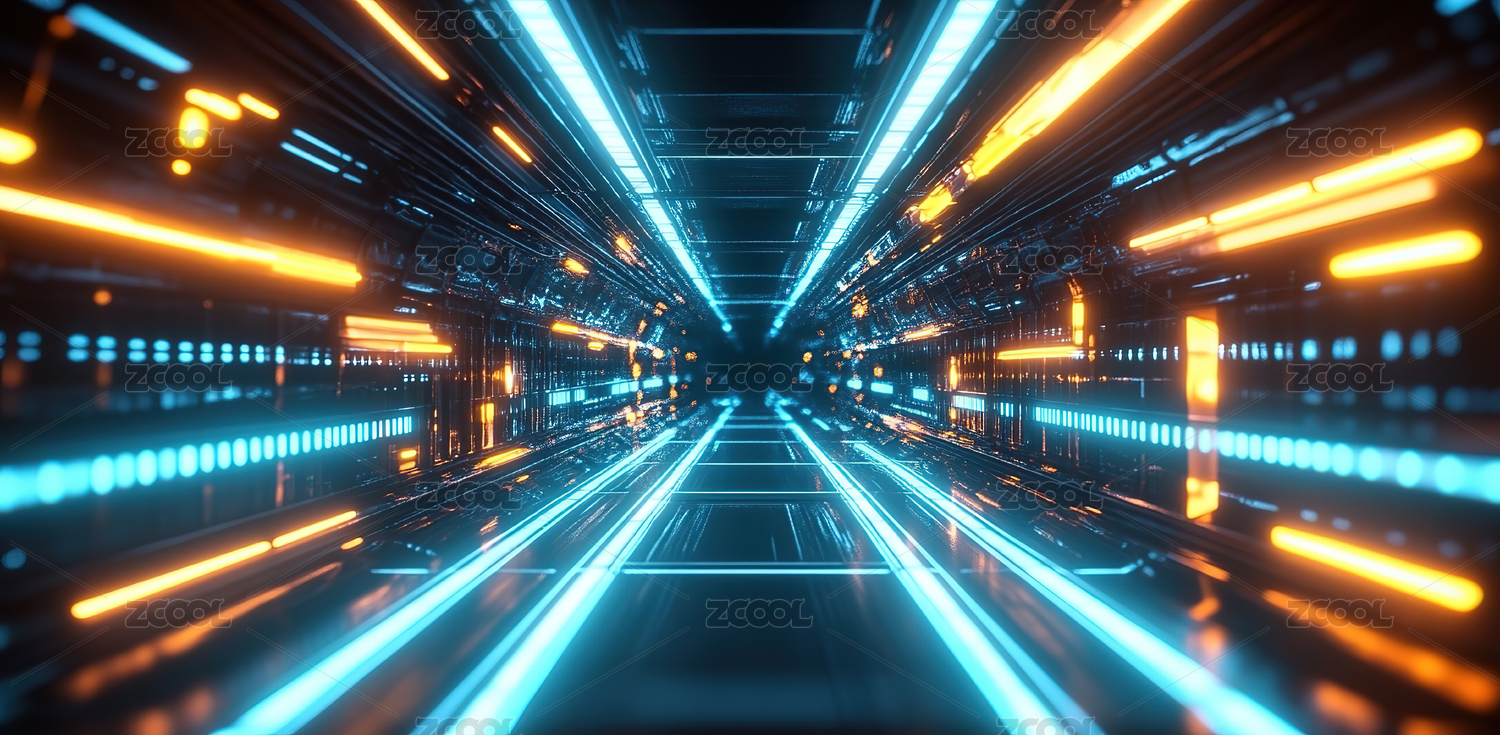 3D,渲染,科技,未来,灯光,科技感,数字艺术,科幻,走廊,网络