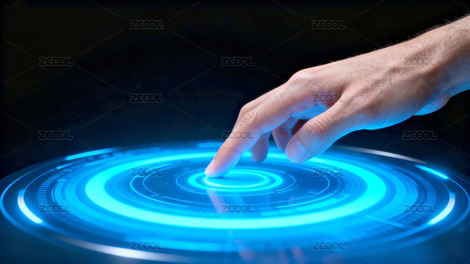深色背景手指蓝光涟漪