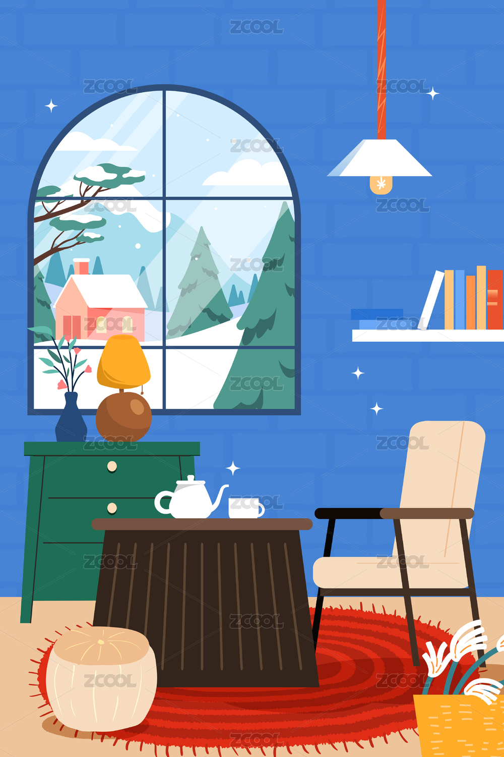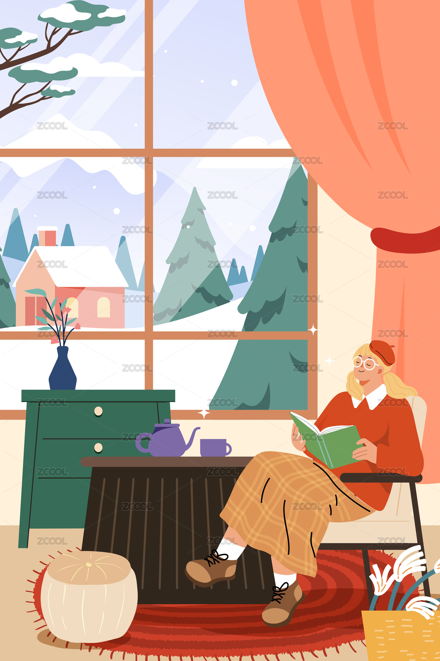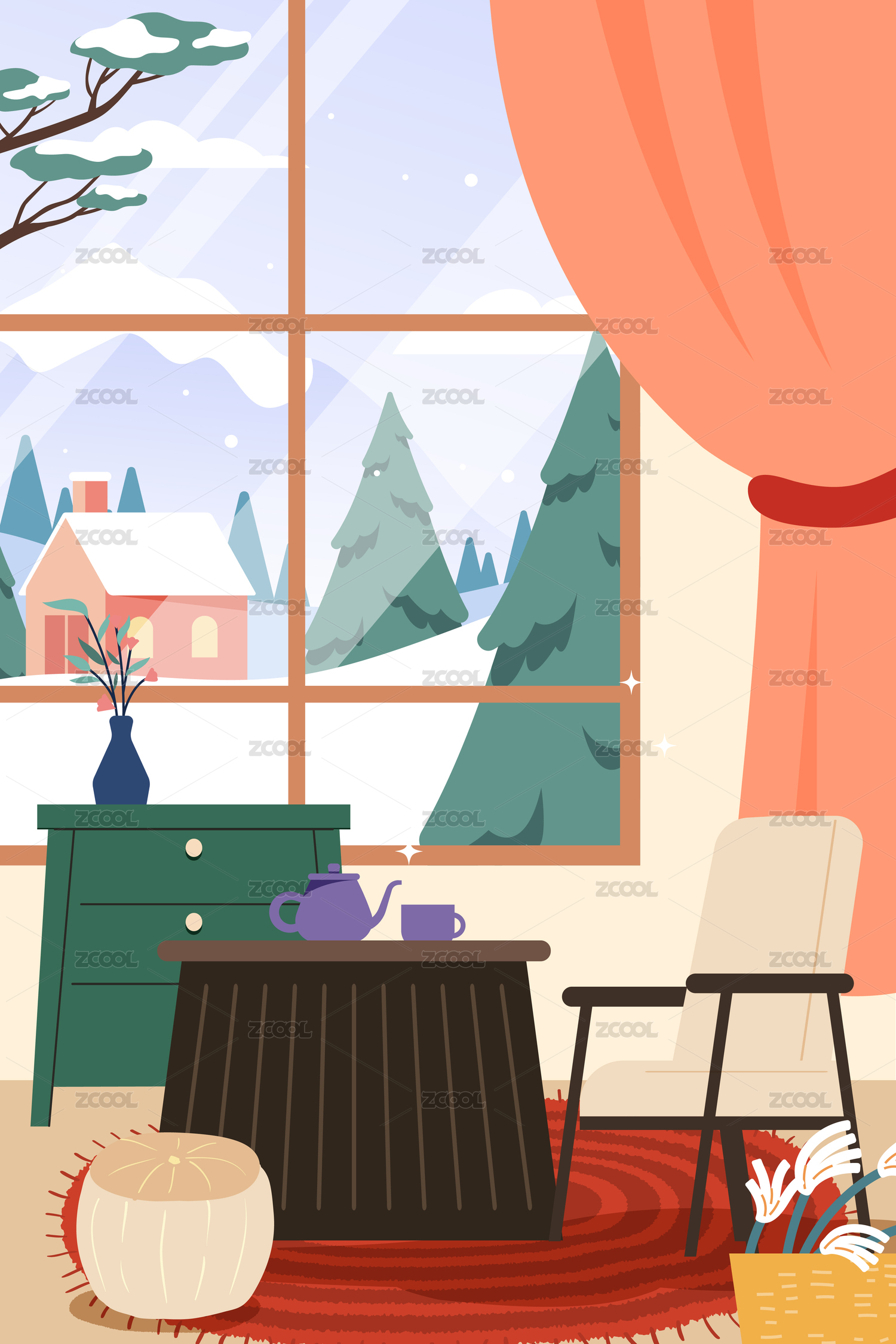 冬季居家生活矢量插画