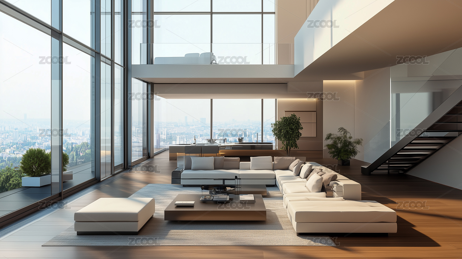 现代,豪华,别墅,室内,设计,楼梯,客厅,大窗户,简约,风格