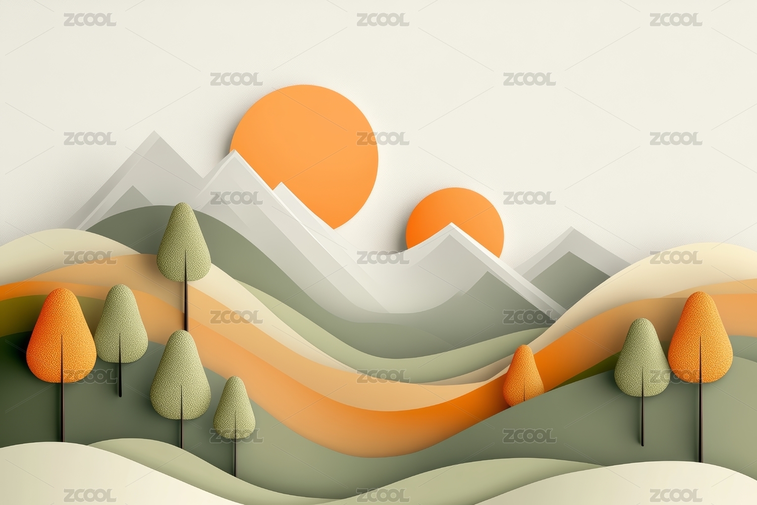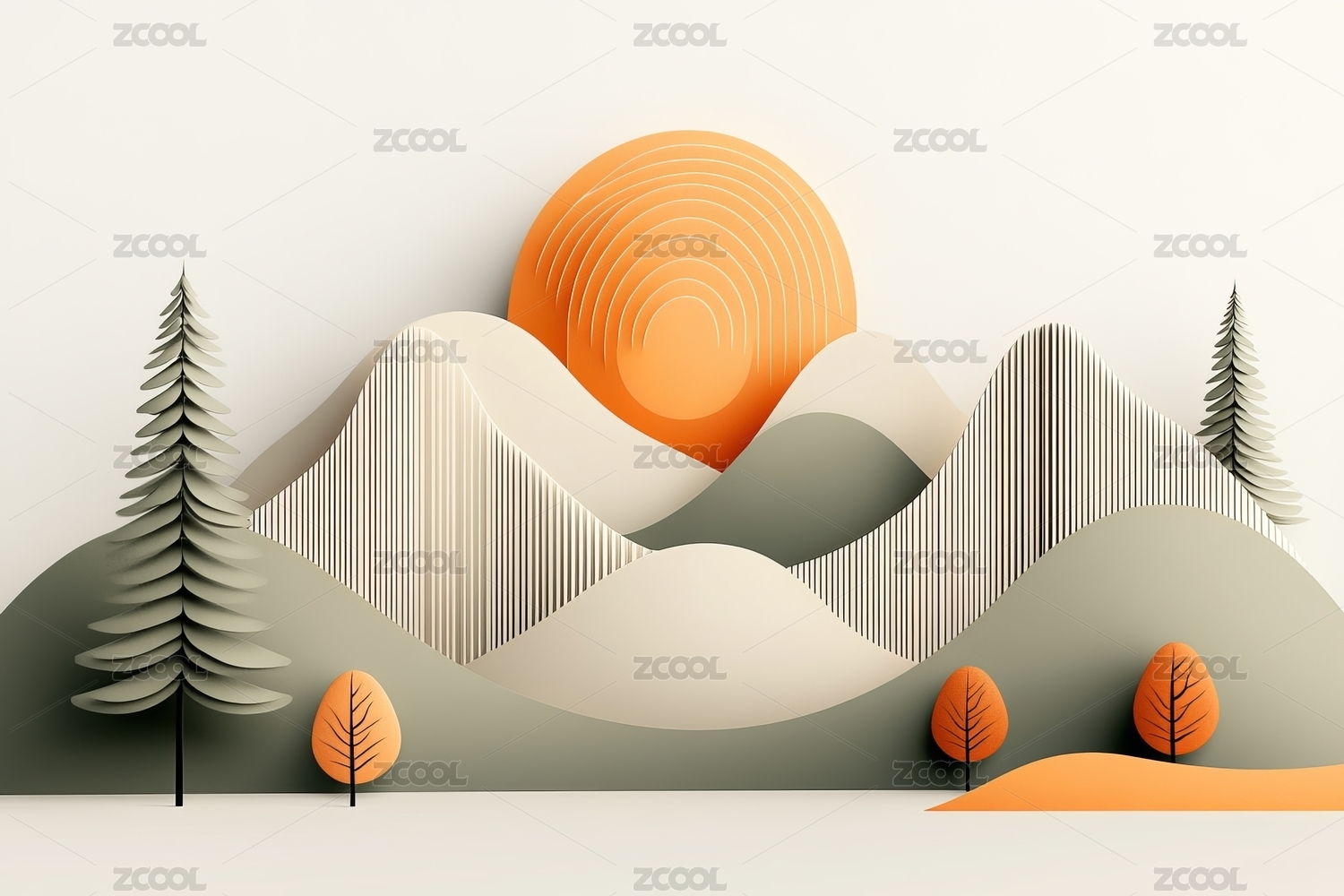 3D风格自然风景设计图案