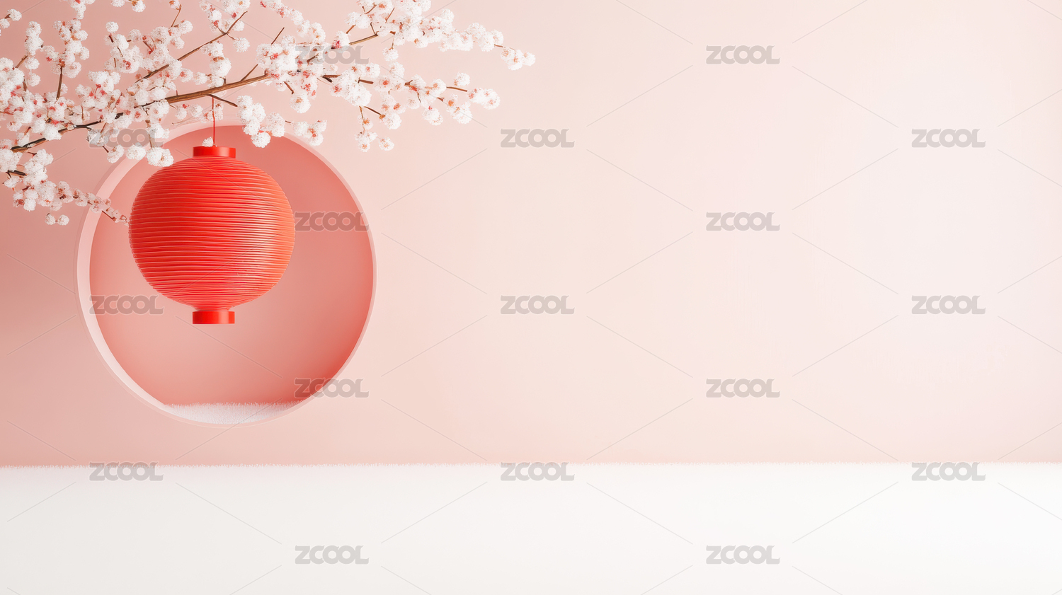 粉色灯笼与樱花枝