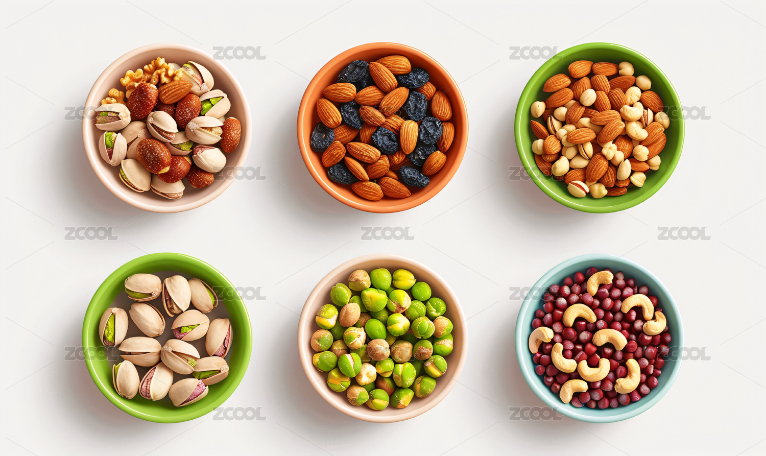 各种坚果和种子的分类展示