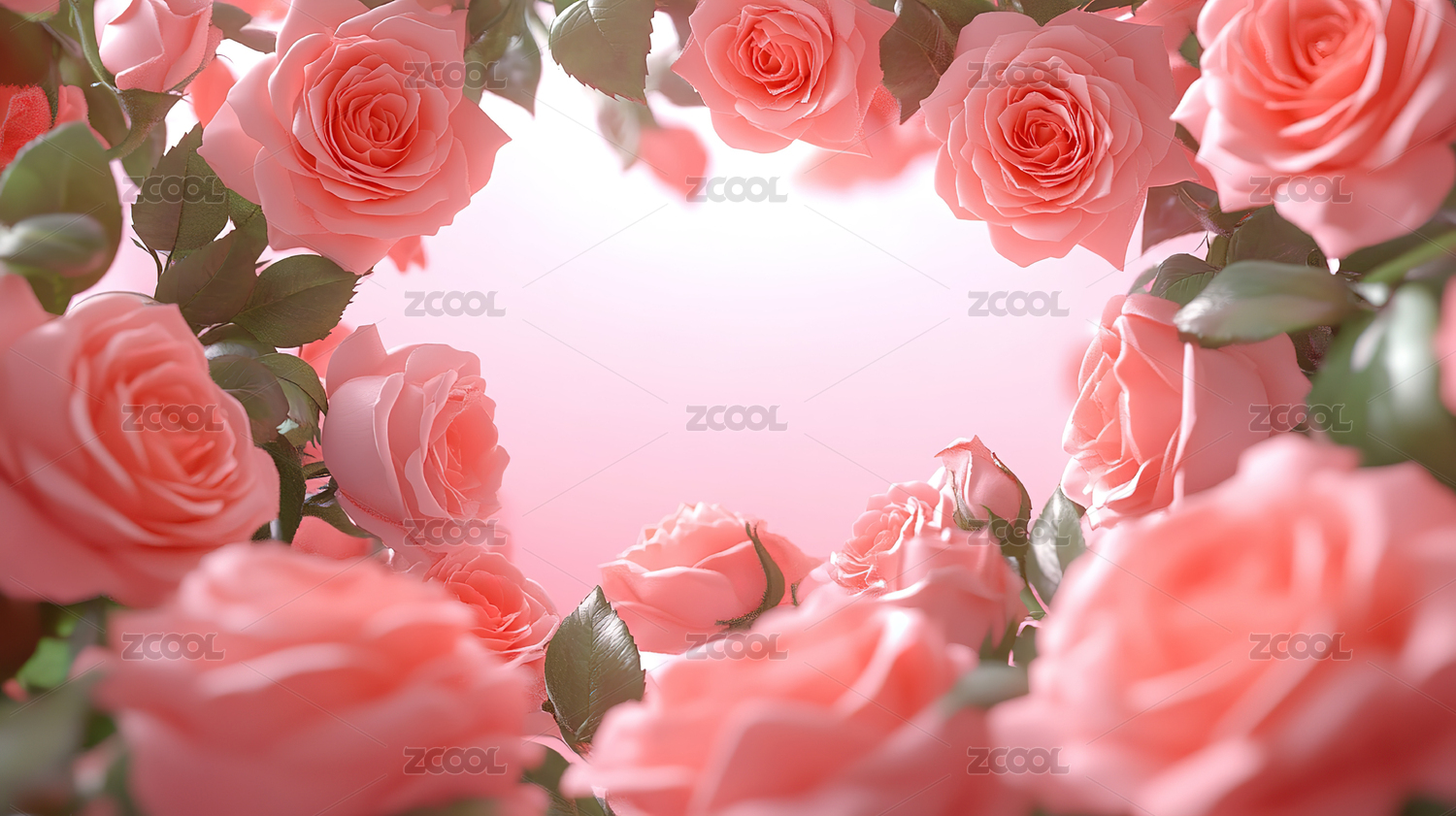 粉色玫瑰花环绕的梦幻背景