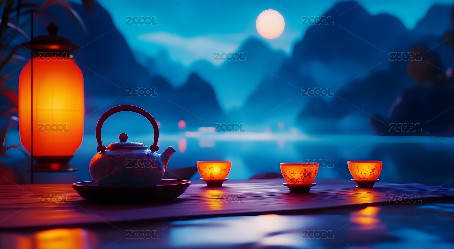宁静的夜晚,月光下的茶壶