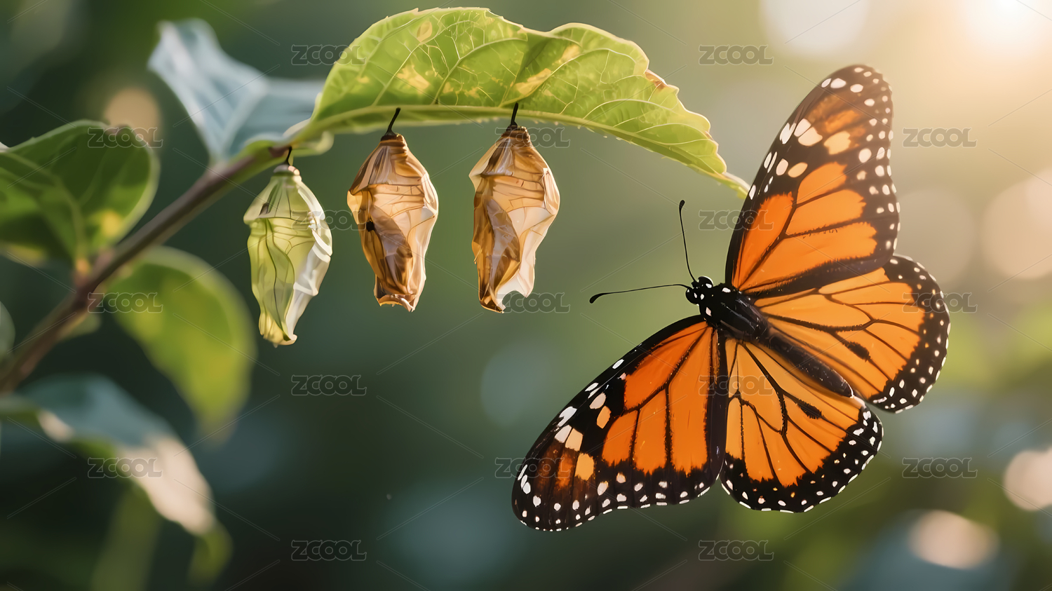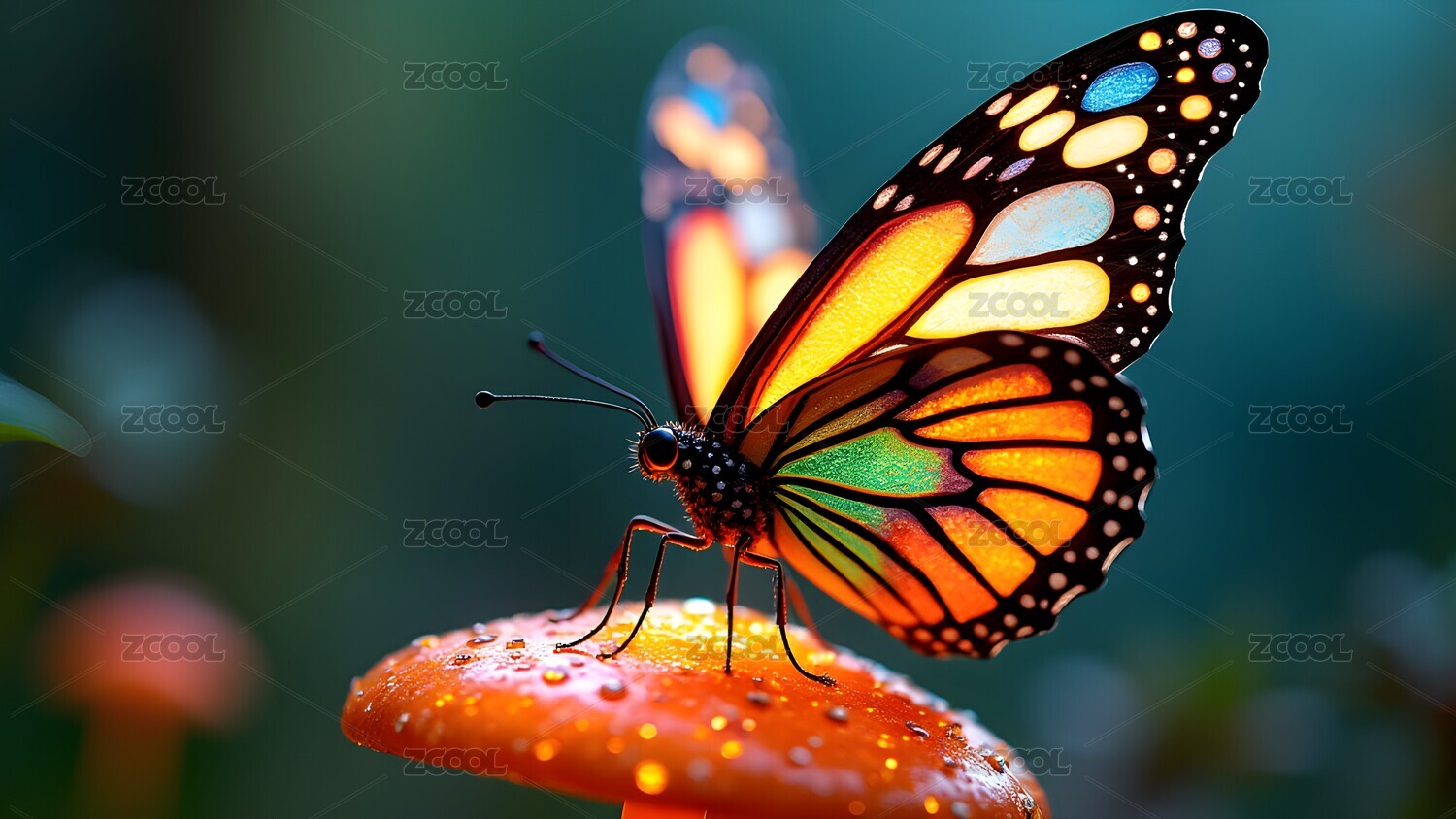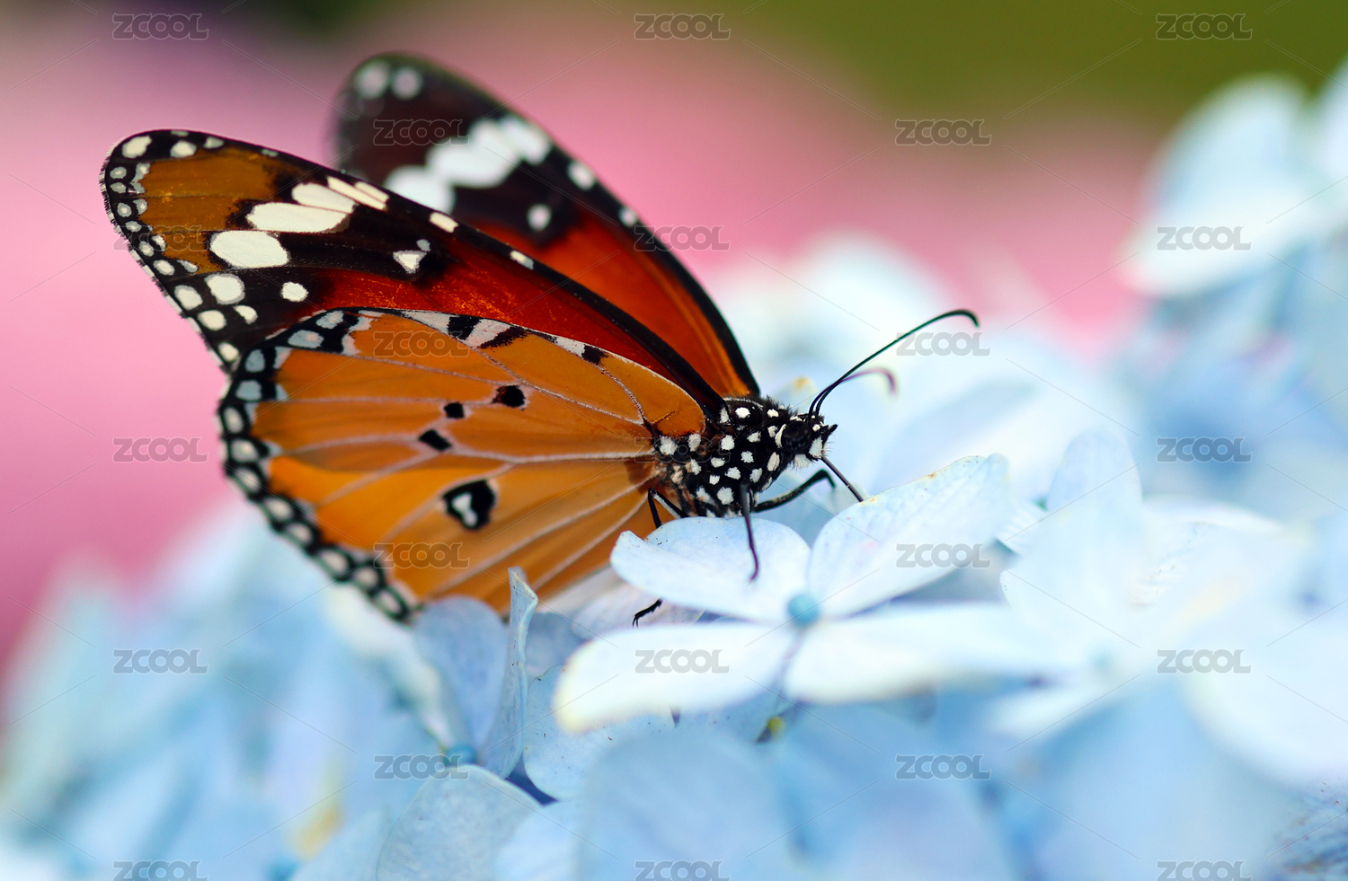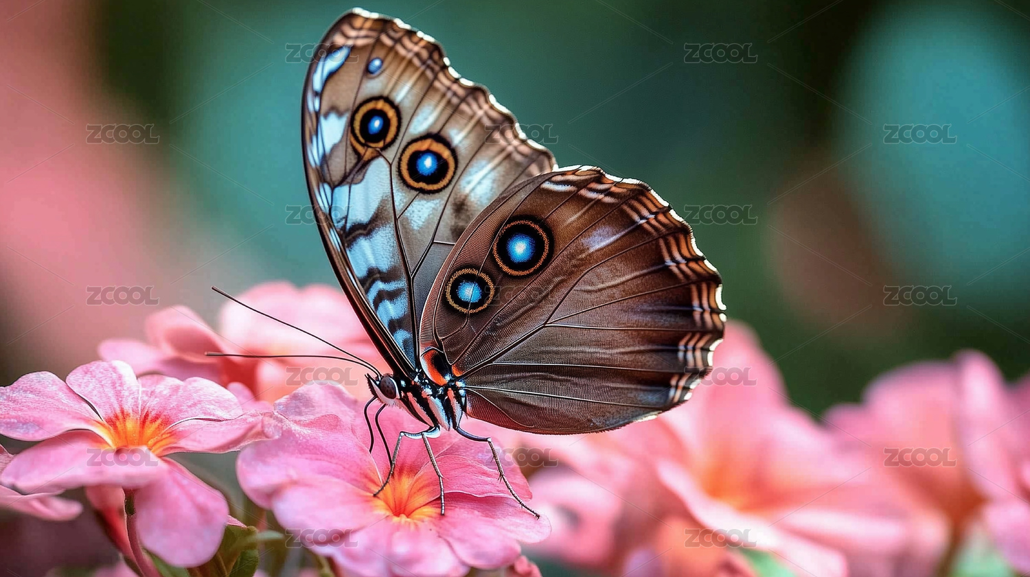 一只美丽蝴蝶栖息在花朵上授粉背景