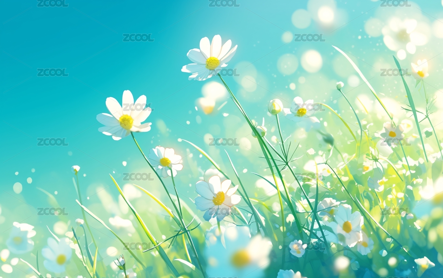 清新,自然,微光,光晕,植物,花蕊,草地,宁静,清晨,薄雾